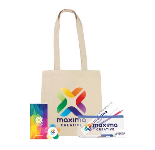 Shop our exclusive collection of branded welcome packs printed with your logo, our extensive range includes everything from printed notebooks, pen and bottle sets, tote swag bag merch items, eco packs with recycled products, chocolate and snack boxes, exhibition merchandise bundles, conference packs and kits, luxury gift boxes and more, or build your own unique merchandise gift box. - Perfect for onboarding new starters or as promotional conference gift packs available in different options. We specialise in custom gift packs and corporate event goodie bags including promo merch bundles of corporate mugs and branded water bottles, printed t shirts and baseball caps, branded snacks and chocolate, ensuring your new employee has a positive experience from day one to encourage employee retention The beauty of these branded welcome kits is that they can be used for various different marketing purposes. Around the holidays or other dates of significance, sending out popular promotional products, samples and gifts to clients and customers in a neat package adorning your company message is a great way to interact with other companies and build up a rapport. And of course, custom gift packs are also great for giving to your own employees as staff appreciation gifts or anniversary gifts in recognition of their hard work. Often businesses like to welcome new hires with a new employee welcome pack and our fantastic selection of branded employee welcome packs allows you to do this in style. Your new hire will appreciate the gesture and won't forget welcoming gifts they received in a personalised box on their first day. All of our branded welcome packs and customised gift boxes have a large print area which can be filled with your company's message, perfect for everything from trade shows and exhibitions to a big conference. We offer the perfect trade show and exhibition giveaway solution with a complete package to suit your needs. We can curate corporate gifts for staff with customised gifts boxes and employee welcome packs which are ready for onboarding, client thank you gifts, staff gifts. new hire and more!