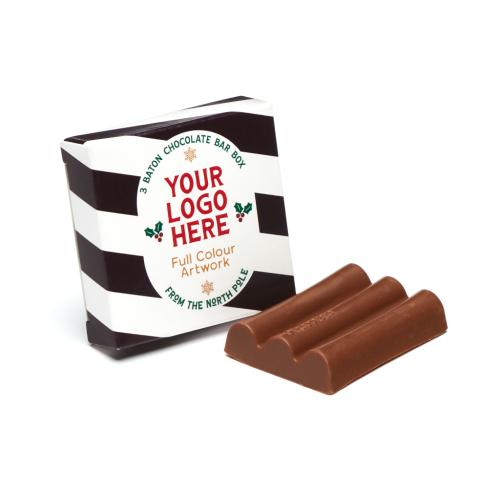 Shop our delicious collection of Christmas chocolate sweets branded with your logo, our range includes everything from chocolate hampers, tins of xmas biscuits, chocolate santas and elves, printed tins of quality streets, chocolate coins, bars of chocolate and more from famous chocolatiers such as Lindor! Christmas Chocolate and sweets are an annual favourite promo gift. With so many bespoke branded Christmas Chocolate options to choose from it can be a difficult choice! Promotional Christmas chocolate is always a popular promotional giveaway that is well received and cost effective. We offer everything from Christmas Chocolate Advent Calendars to boxes of custom printed mince pies branded with your logo to make the festive season go with a swing. If you are looking to order Christmas chocolates in bulk, simply speak to one of our dedicated account managers who will be happy to help.