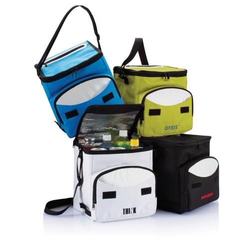 600D cooler bag with silver lined insulation inside to keep all your food and beverages cold. On the front there’s one additional pocket with printed colour detail around the zipper for storing your other belongings.