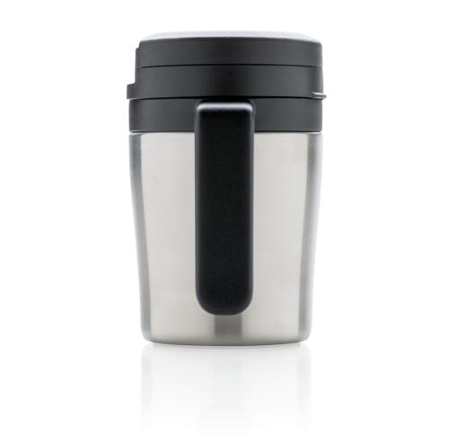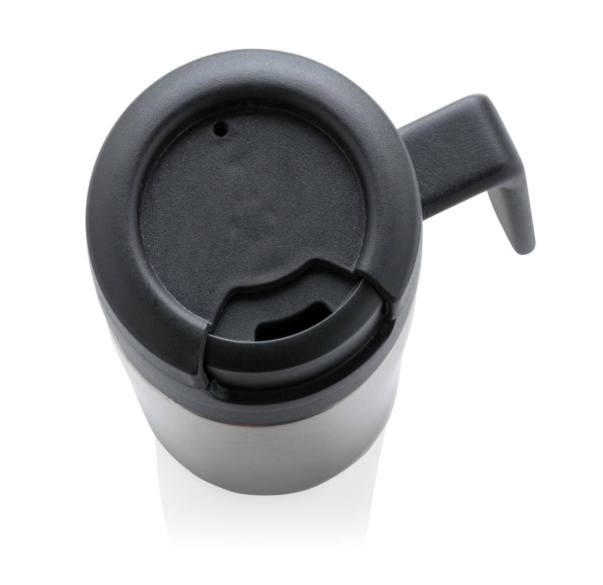 Less is more. Being 8cm high this is the perfect double wall mug for your coffee machine. PP inner. Great for Ristretto, Espresso and Lungo coffee. Nice handle for 1 hand drinking. Easy twist spill proof lid. Hand washable only. Content 160ml. Registered