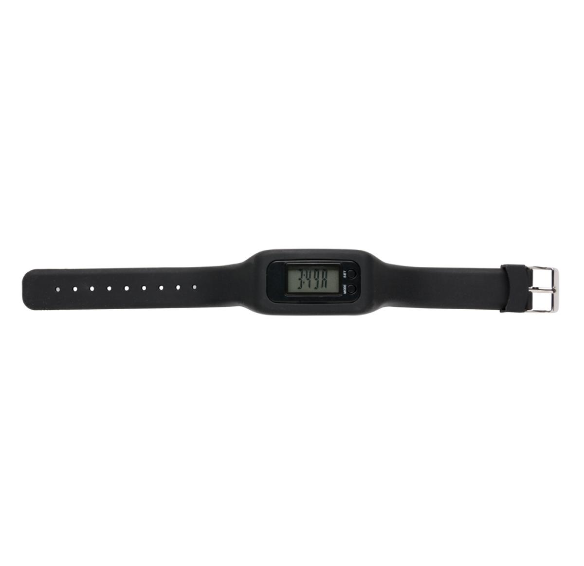 Pedometer bracelet with ABS pedometer unit and acrylic screen. The armband is made out of comfortable silicone material. The bracelet is adjustable to fit various wrist sizes and therefore suitable for all users. The bracelet counts steps, calories burned