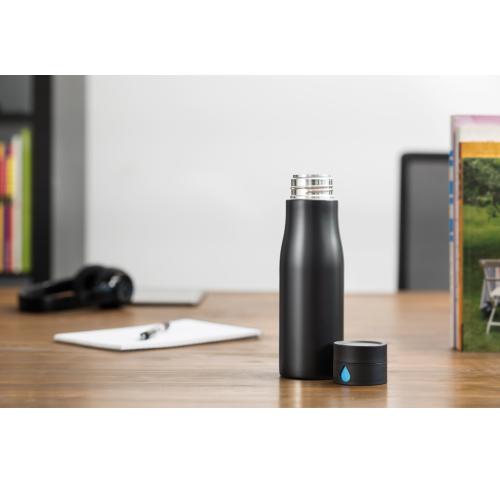 Track your daily hydration goals with this smart designed stainless steel 650ml. water bottle. The lid displays a bigger water drop each time you refill and twist the collar so you can easily keep count of the number of bottles you drink. Handwash only an