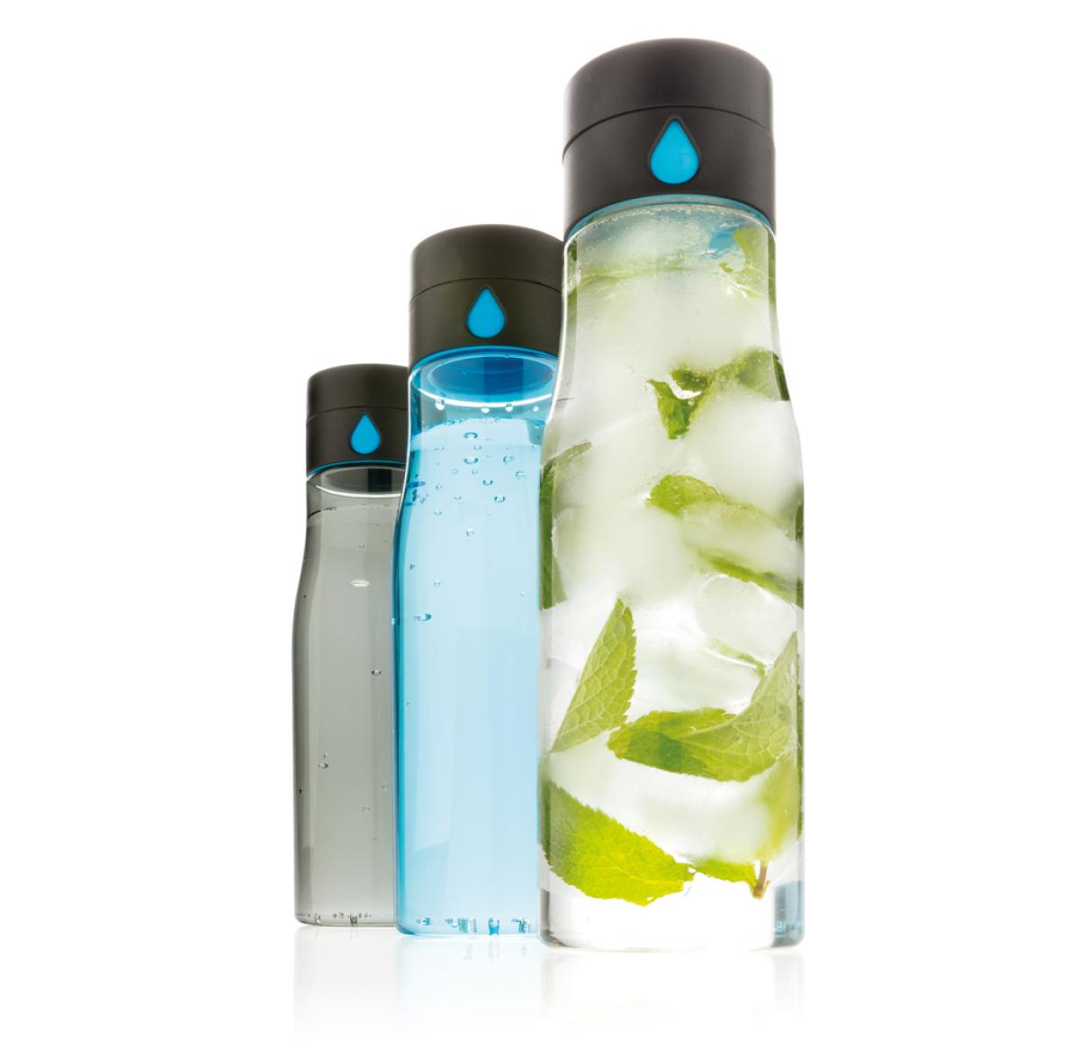 Track your daily hydration goals with this cleverly designed leakproof tritan water bottle. The lid displays a bigger water drop each time you refill and twist the collar so you can easily keep count of the number of bottles you drink. Handwash only. Cont