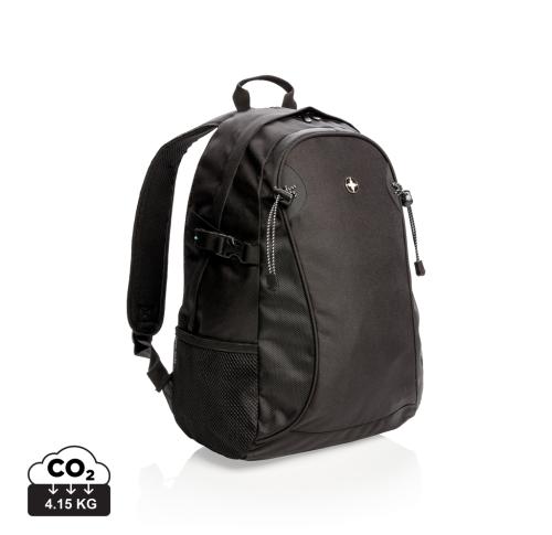 600D and 1680D polyester outdoor backpack with one large main compartment. Comfortable padded backpanel. Side mesh pockets can hold a water bottle or extra gear. PVC free.