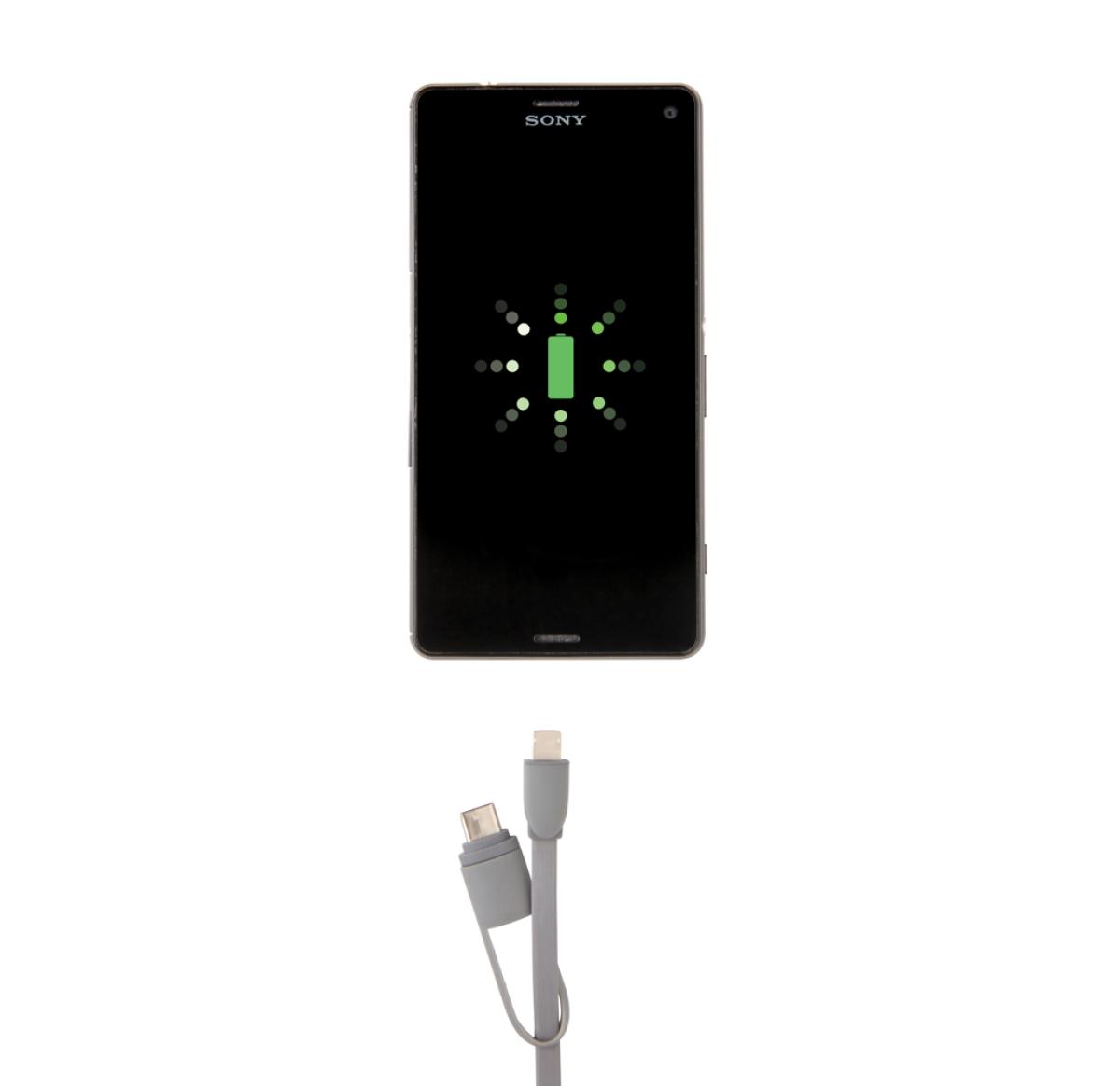 Compact and retractable 3 in 1 charging cable with type C and double-sided connector for IOS and Android devices that require micro usb. Because of the retractable mechanism the 100 cm long flat cable can easily be taken anywhere without it getting tangle