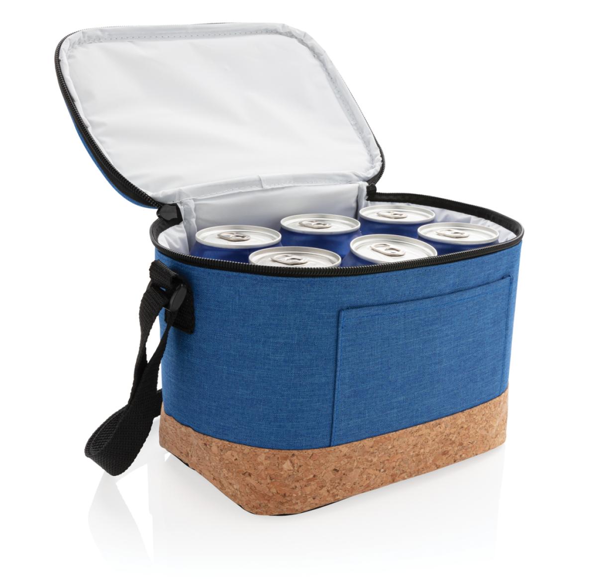 Printed Two Tone Cooler Bag With Cork Detail Blue