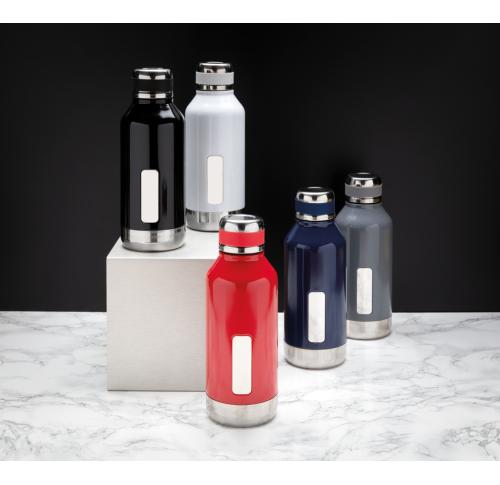 Leakproof vacuum insulated bottle with twist off lid. With unique logo position on the front. 304 stainless steel inner and 201 stainless steel outer keeps your drinks hot 5h and cold 15h. Content: 500ml.