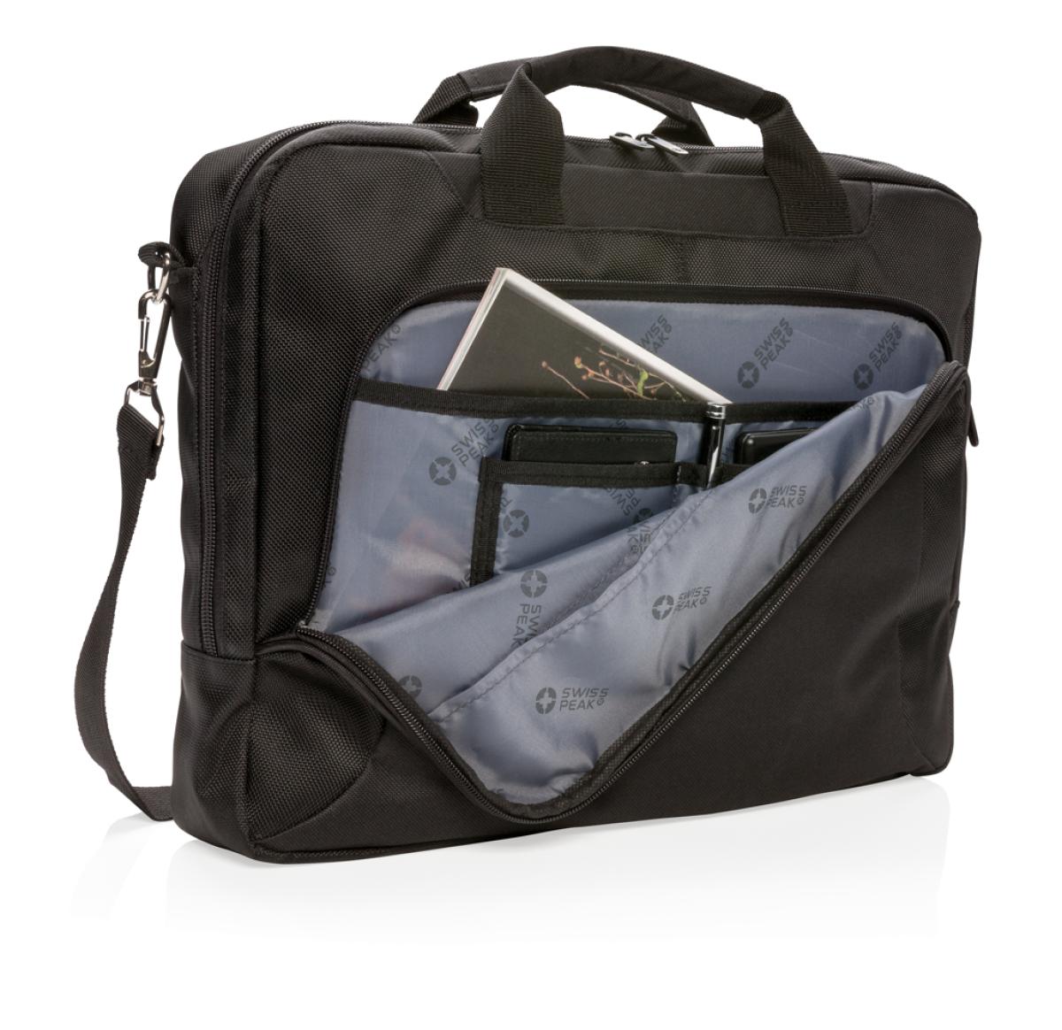 Luxurious 15.6” 1680D laptop bag. Multi compartment design with a padded laptop pocket, main compartment with enough space for your power cable etc. and a front zipper pocket to hold other valuables such as your mobile phone and powerbank. PVC free