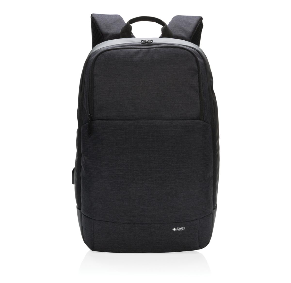 Fashionable 15” laptop backpack in two tone polyester with PU. Designed with one large main compartment for your laptop and one front compartment. Innovative handsfree suction system on the straps will hold your phone while commuting. Connect your powerba