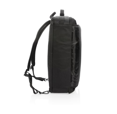 Break barriers using the convertible backpack. Functional organisation and business features ensure this backpack will be an everyday choice. 4-1 Convertibility: 1. Backpack: Clip the padded straps to the secure rings and adjust the fit to create backpack
