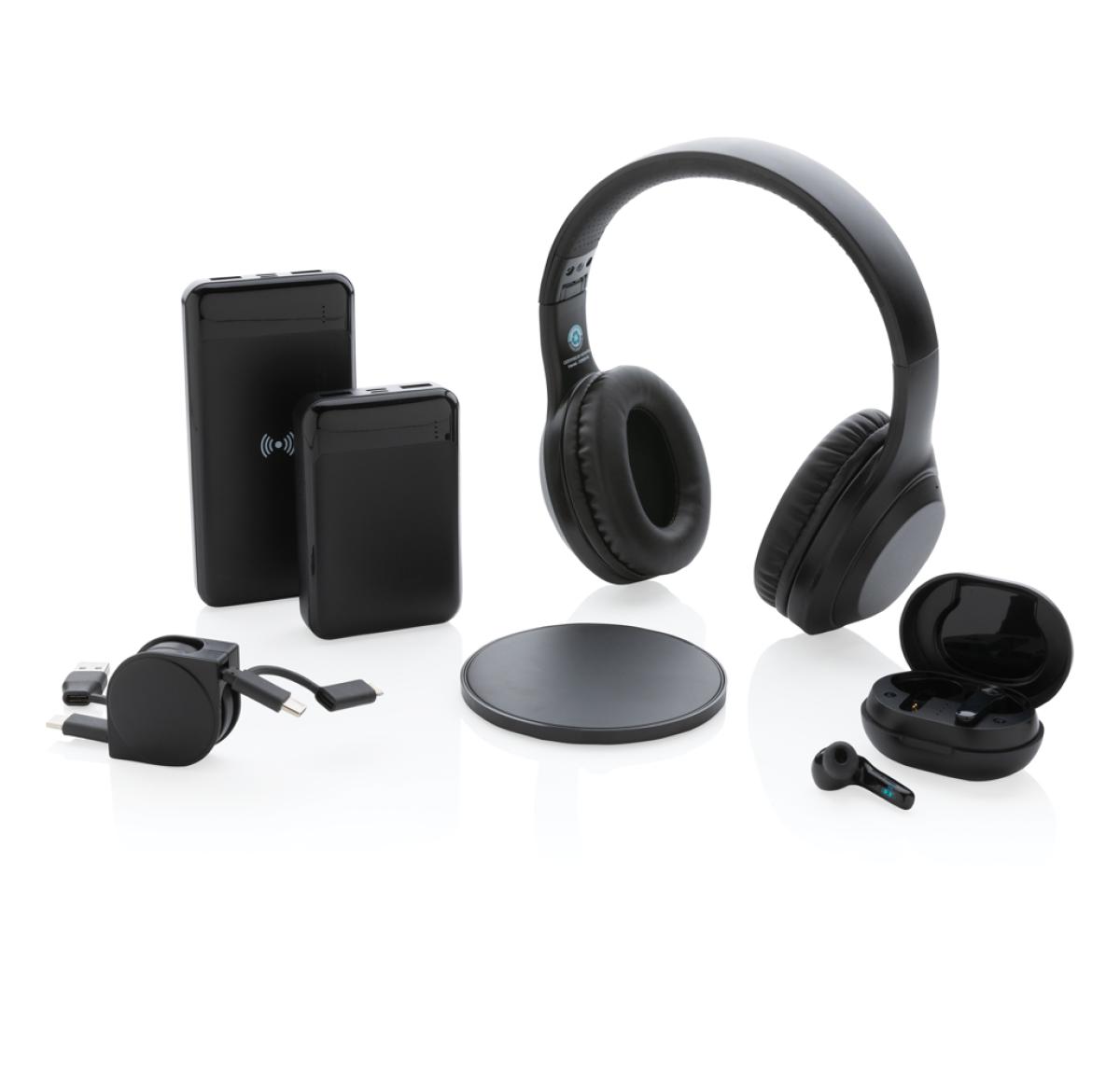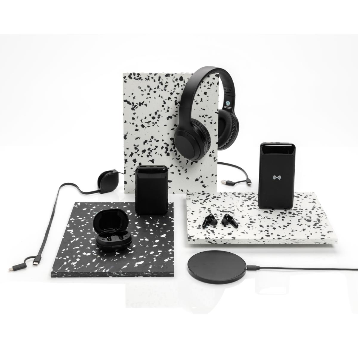 6-in-1 retractable cable where the case is made out of RCS certified recycled ABS plastic and the wire from recycled TPE. Total recycled content: 59% based on total item weight. RCS (Recycled Claim Standard) is a standard to verify the recycled content of