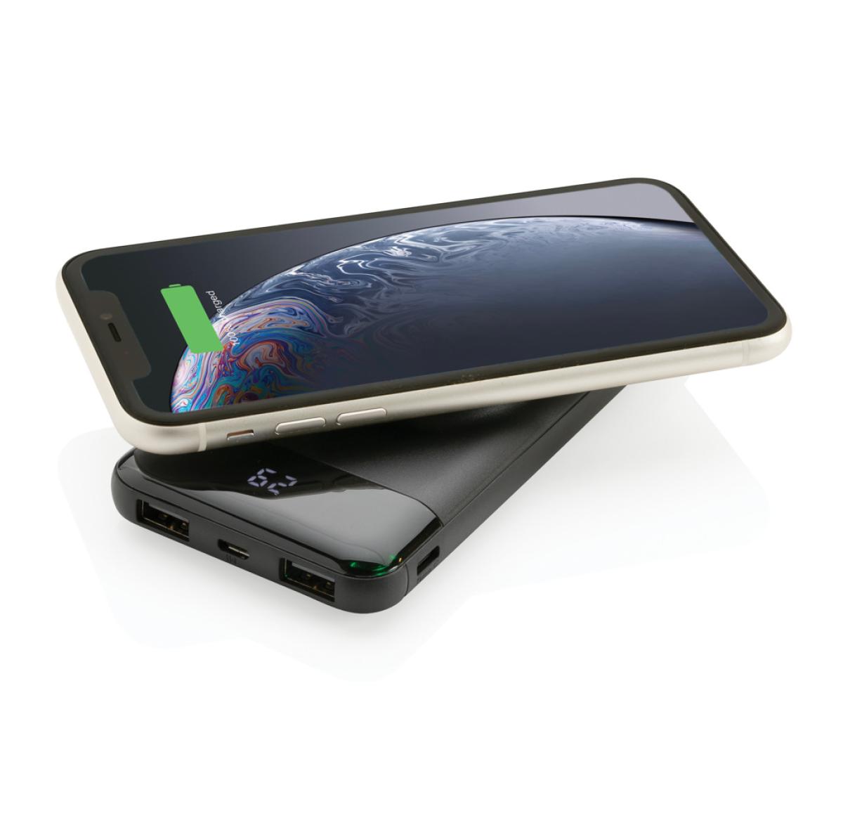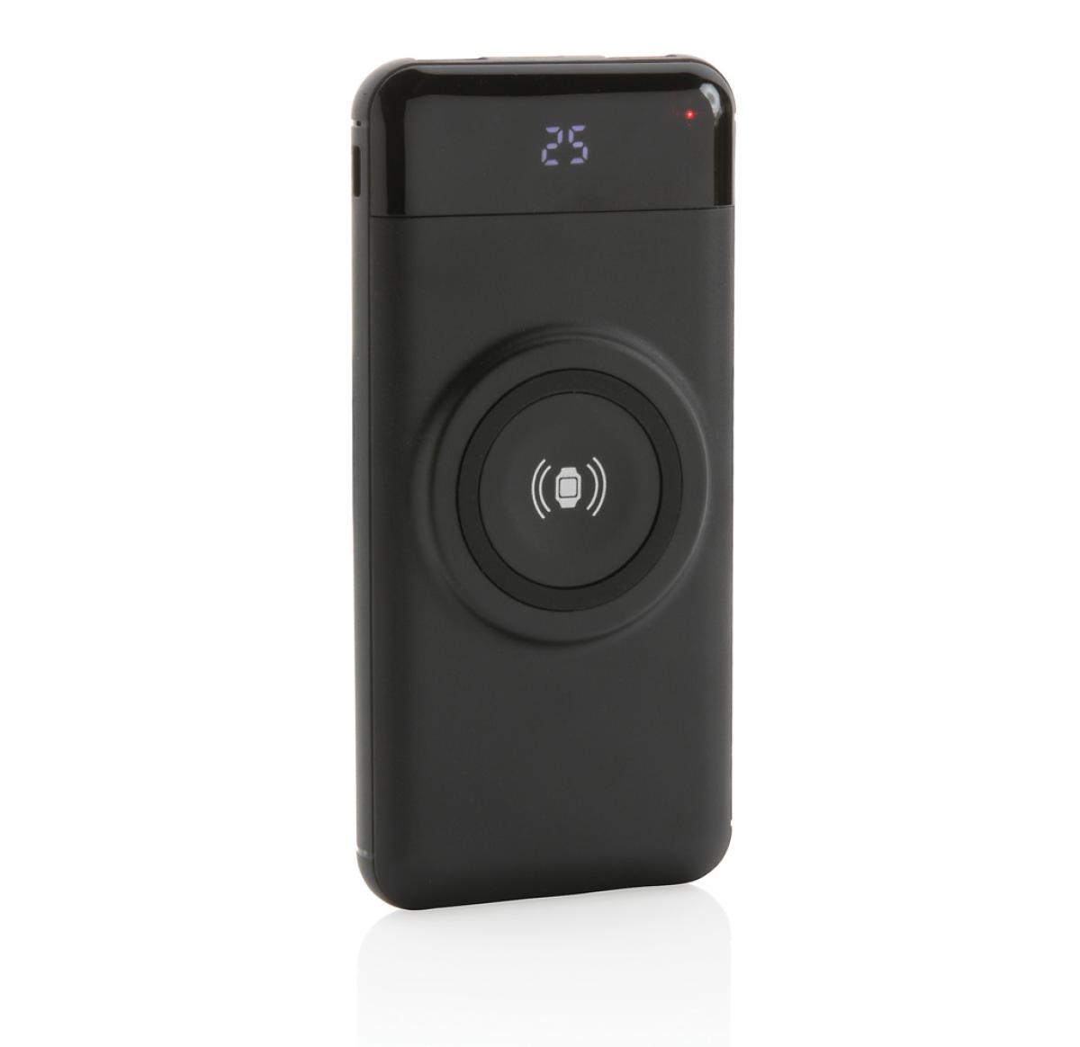 Multifunctional 10.000 mah powerbank that can charge your mobile devices wirelessly and also your Apple watch via the 3W wireless watch charger. Simply place your phone or watch on the wireless charging pad to charge it. With 2 USB output ports to charge