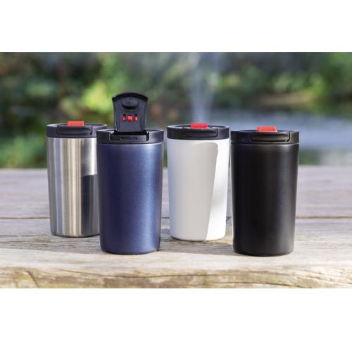 This double wall vacuum leakproof lock mug is the perfect size for your beverage. It's leak proof sealing flip lid is designed for easy open/close and on-the-go use. Vacuum insulation keeps beverages hot for up to 5 hours and cold for up to 15 hours. Capa