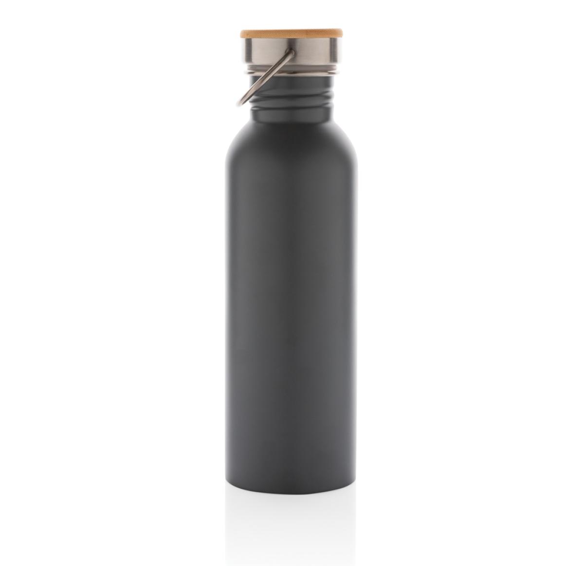 A drinking bottle that is beautiful through its simplicity. This modern single wall stainless steel bottle features a stainless steel lid finished with a beautiful piece of bamboo. With a stainless steel handle for easy carrying. Capacity 700ml. BPA free.