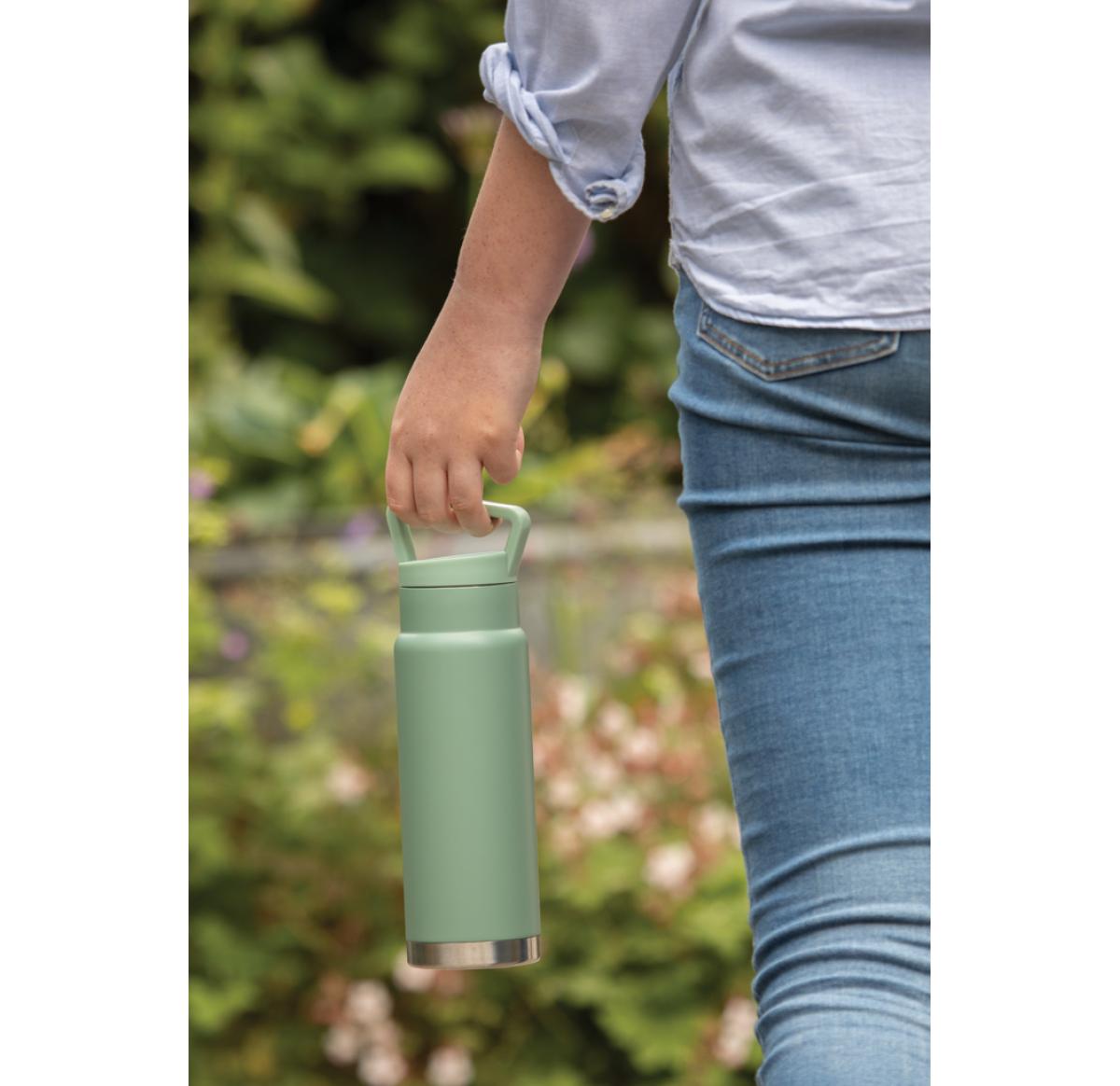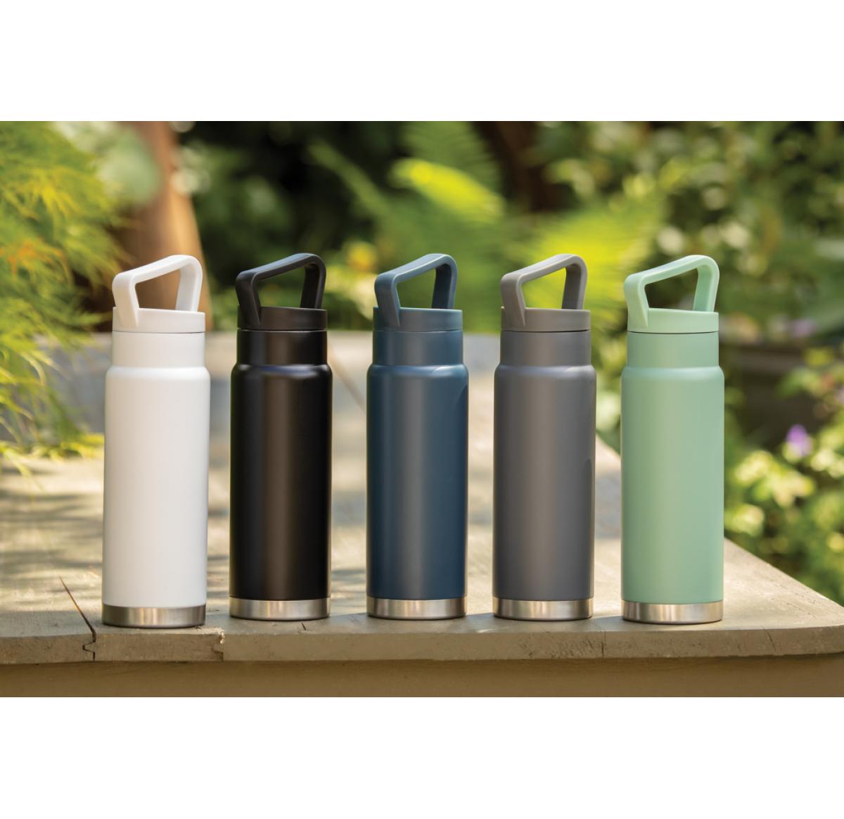 Made of high quality stainless steel, this one-of-a-kind bottle also has double insulation to keep your drink cold for up to 15 hours or hot for up to 5 hours. The handle on top of the lid makes it easy to carry around everywhere. Capacity 650 ml. BPA fre