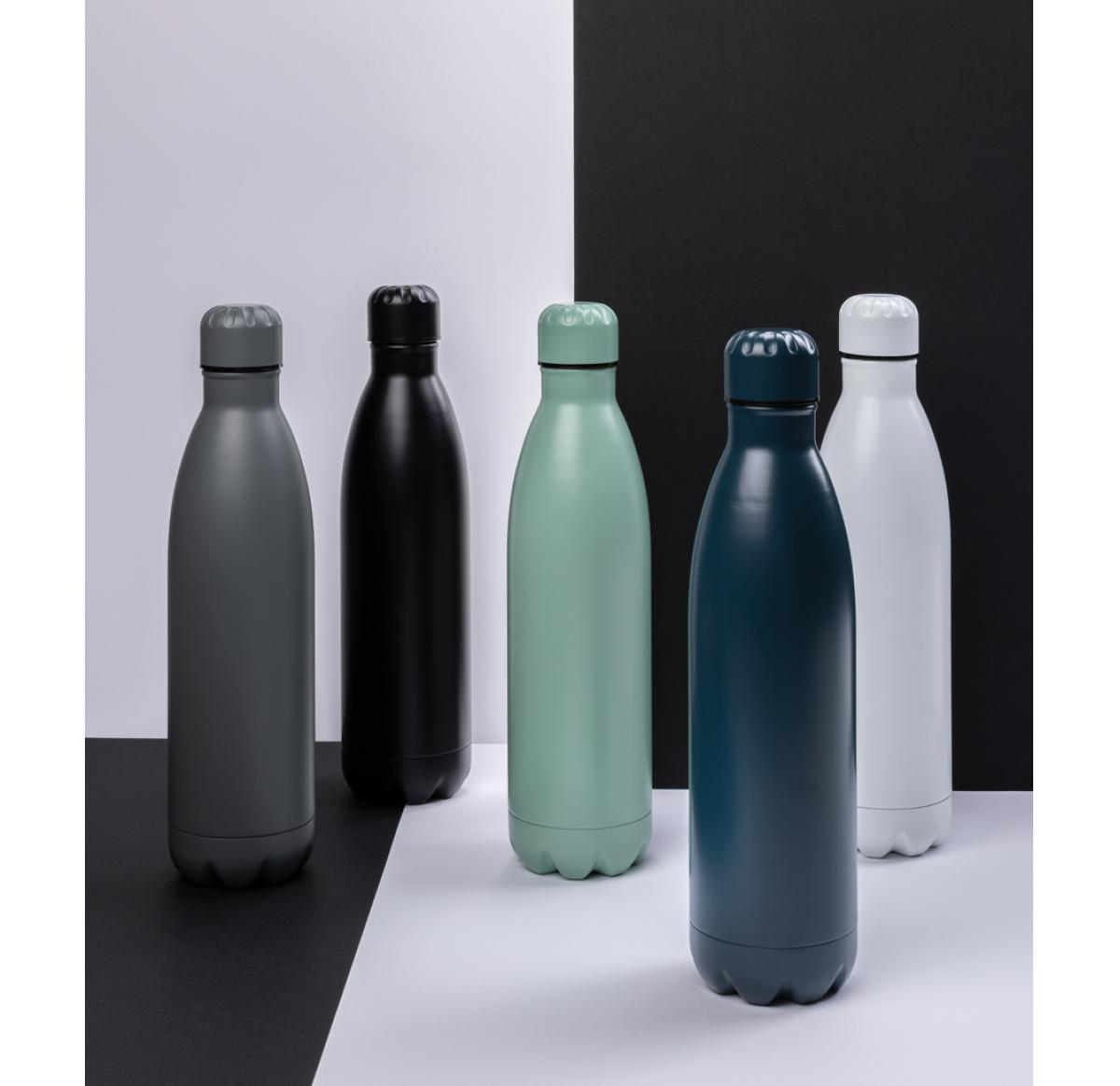Elevate your daily water intake with this solid colour vacuum insulated stainless steel bottle. The bottle keeps chilled beverages cold for up to 15 hours and hot drinks warm for up to 5 hours. With a base that fits in most cup holders, this sleek looking