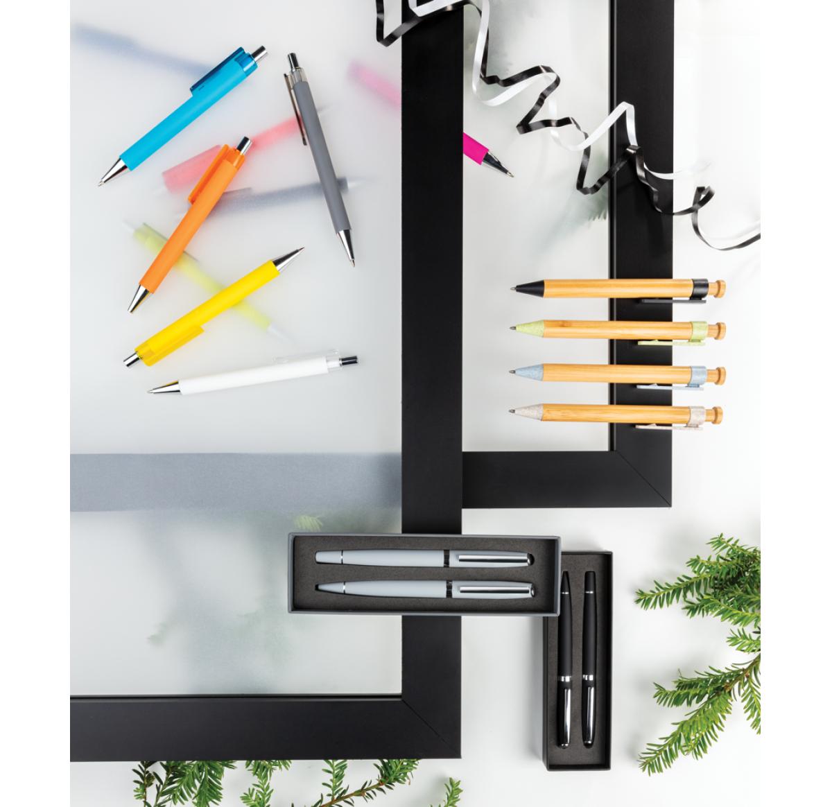 This beautiful looking pen is great for jotting down meeting notes and ideas. Keep it in your bag or notebook to ensure every thought is written down. Made with bamboo and wheatstraw. Wheatstraw composition of the clip is 40% wheatstraw and 60% ABS. With