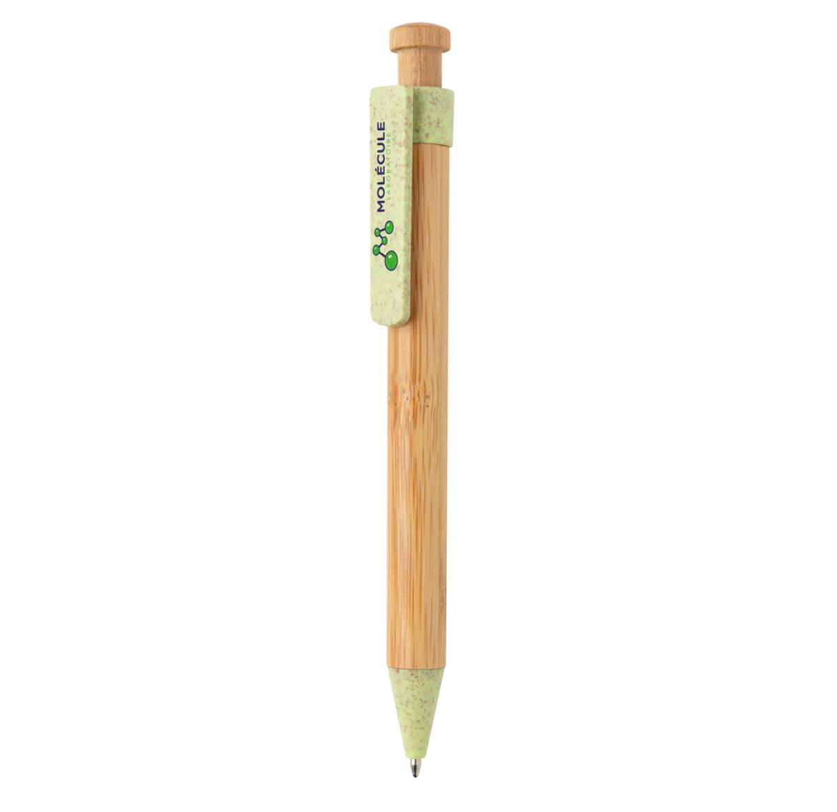 This beautiful looking pen is great for jotting down meeting notes and ideas. Keep it in your bag or notebook to ensure every thought is written down. Made with bamboo and wheatstraw. Wheatstraw composition of the clip is 40% wheatstraw and 60% ABS. With