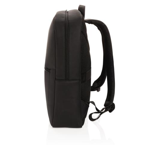 Take your commuting style up a notch with this structured backpack made with soft vegan leather in a clean and sleek style with tonal zippers. The backpack features a top zip closure, top carrying handle, adjustable shoulder straps, external zip pocket, i
