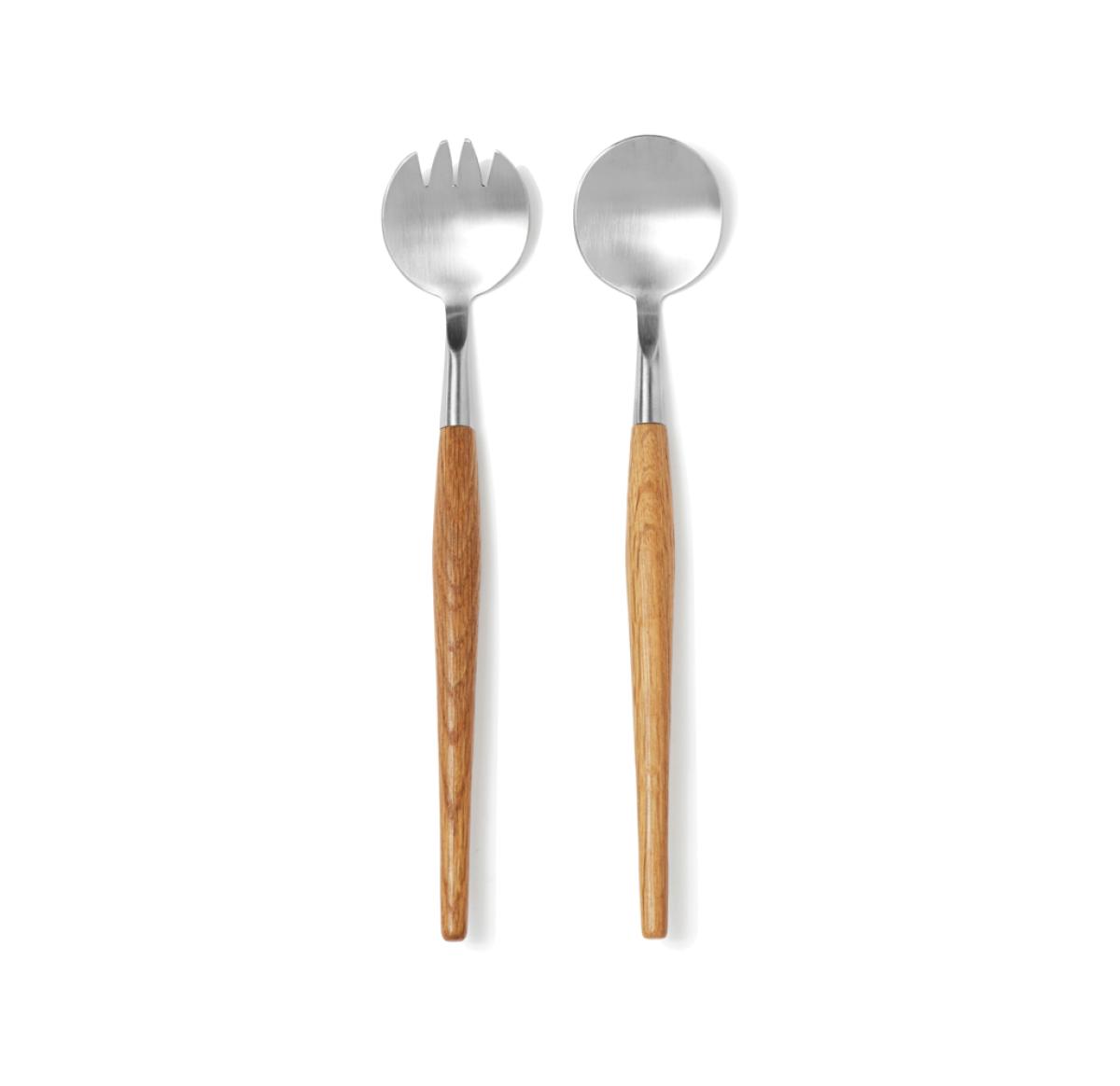 Steel serving cutlery with oak handles. A classic and minimalist design in pure Scandinavian style. The utensils are perfect for dinners and special meals at home. Packed in an exclusive gift box.