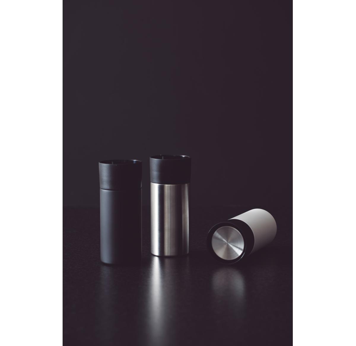 A simple solution to make your everyday life better is to get a to go mug which can be opened with only one hand. Always on the run? Then this mug will be your favourite, keeps cool and warm for 6 hours. It is produced in 18/8 steel and because of that choice of material neither smell nor taste will stick in the mug. Dishwasher proof! 300 ml.