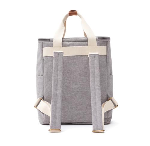 Cooler backpack that fits perfectly for both the smaller and larger get away. The cooler backpack has smaller pockets on both sides and one bigger pocket on the front. The main material is a recycled material made out of recycled PET bottles. It keeps cool well and is easy to clean with the larger opening.