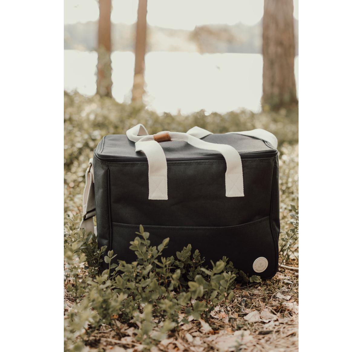 This spacious cooler basket with a lid means the end to the old boring plastic versions. The cooler bag is in a melange fabric accompanied with PU details which makes it as fancy as a normal bag. Produced in 50% recycled polyester from recycled PET bottles. The PEVA lining keeps cool for a long period of time, and is also easy to clean. Both with shoulder strap and handles.