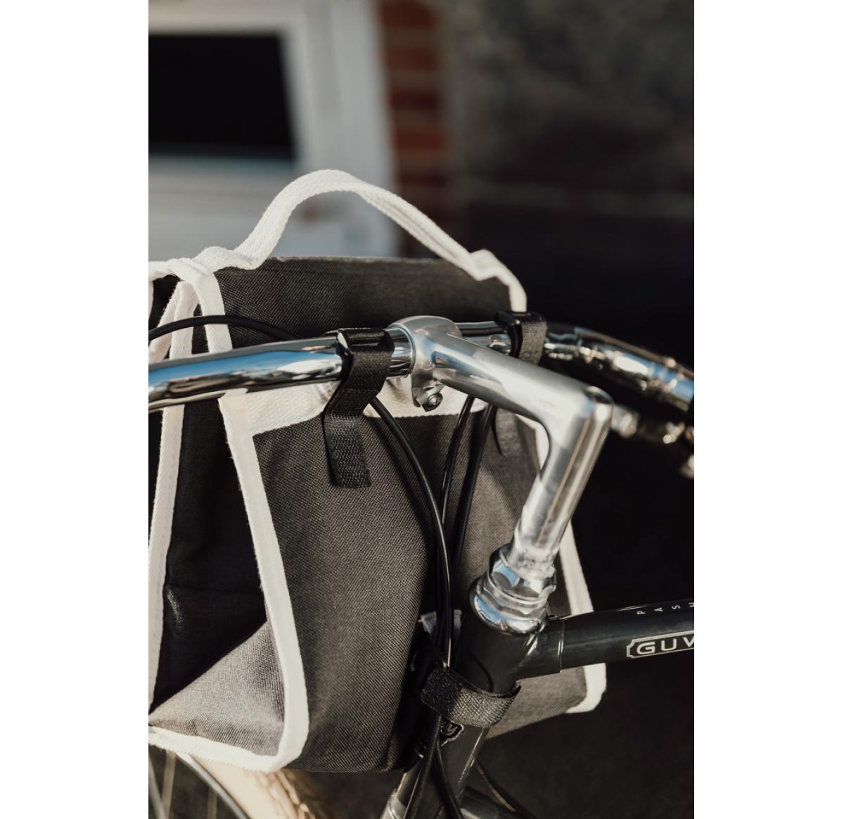 This modern, stylish cooler bag is perfect for your excursions. It is made of 50% recycled material from PET bottles. The inside can easily be wiped out and thick PEVA padding keeps the bag cold for a long time. With a touch fastener on the back of the bag, you can secure it to your bicycle handlebars. The bag also has an adjustable cover, ensuring optimal cold insulation every time.