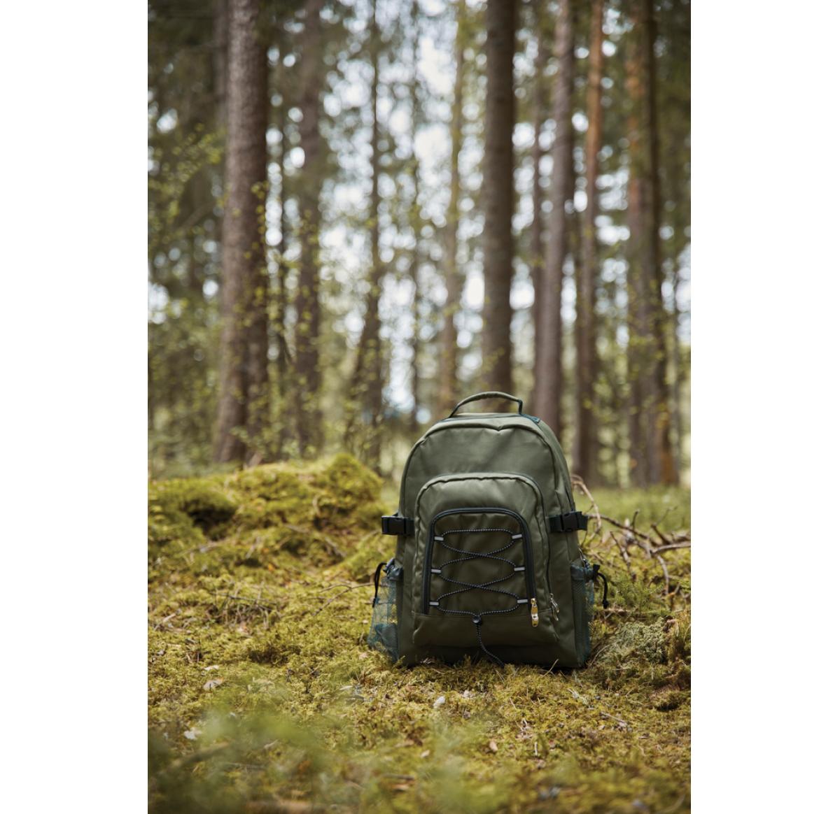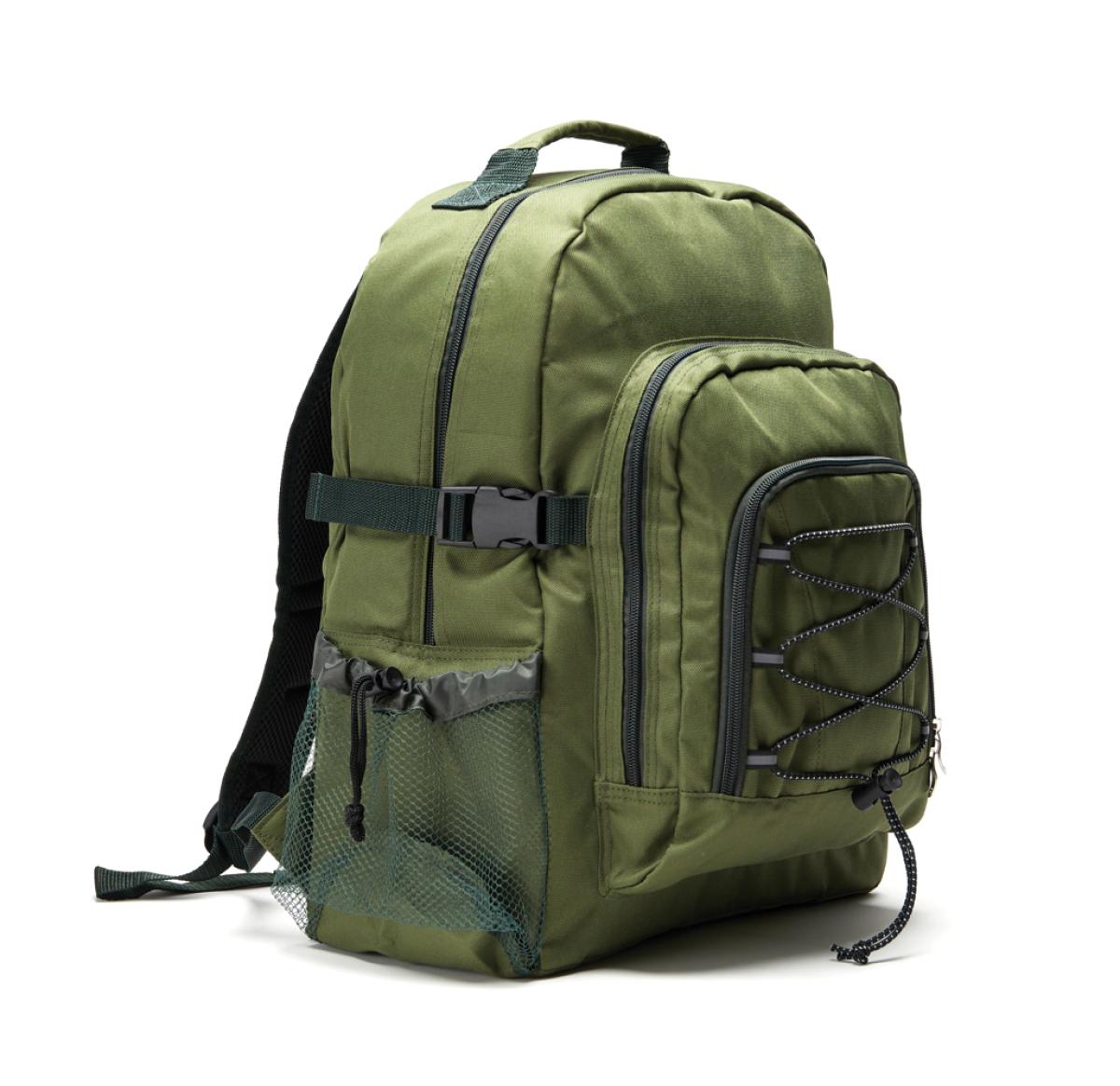 Spacious backpack with cooling function and many compartments. 600D polyester.