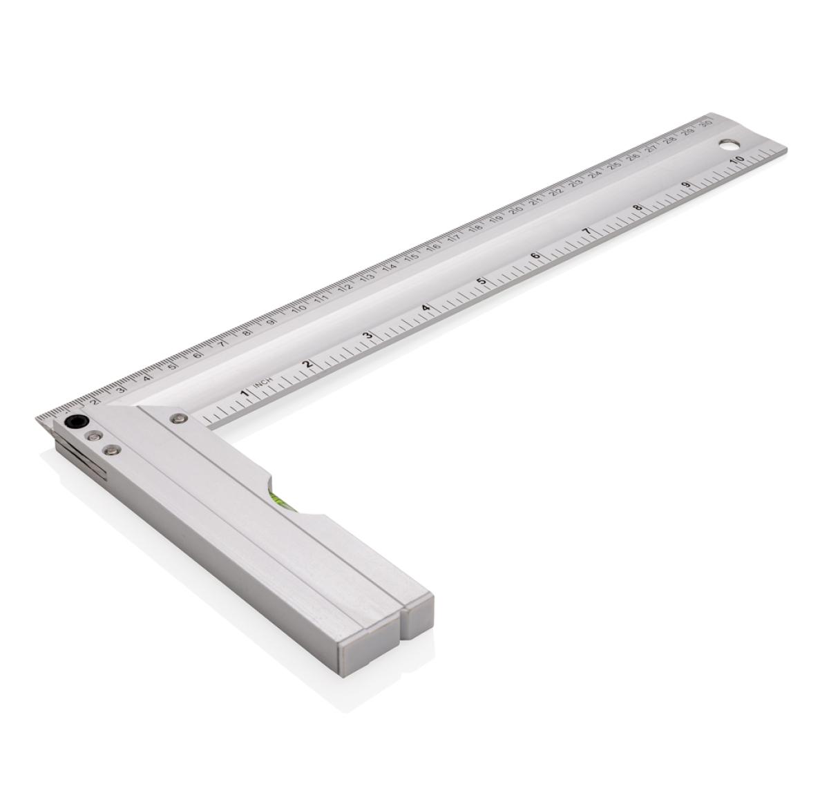 Professional aluminum square ruler with integrated level optimal to measure corners and draw squares. Double sided printing with indication in CM (30) and inches (10) Level Accuracy 0.5mm