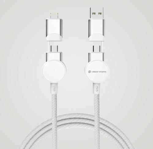Always charge using the fastest charging speed possible with the Oakland fast charging cable. Made with certified recycled materials. The case is made out of 100% RCS certified recycled TPE plastic and the wire from 100% recycled TPE inner material and 100% recycled PET outer layer. RCS (Recycled Claim Standard) is a standard to verify the recycled content of a product throughout the whole supply chain. RCS is the standard that is used when a part of the item has been made from recycled materials. The 120 cm cable has 5 different connectors: USB C in, USB A in, type C out, IOS out and micro USB out. This also allows you to use the cable with type C output devices that are included in the newer generation of phones and macbook computers. The cable also has a USB A output input option so it can charge any device from any output source. Max current type C to lightning 18W. Max current type C to type C 45W. Urban Vitamin items are made without PVC and packed in plastic reduced packaging.