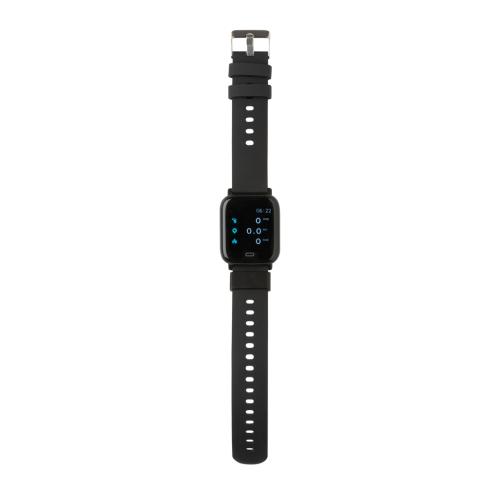 Modern lifestyle watch with 1.3?? point touch colour screen to track your activities all day long. Made with RCS (Recycled Claim Standard) certified recycled TPU armband and ABS frame. Total recycled content: 31% based on total item weight. RCS certification ensures a completely certified supply chain of the recycled materials. Features include: Step count, calories, distance, multi-sport tracking alarm clock, heart rate tracking, blood pressure monitoring, sleep monitor, calendar updates, make and receive calls, notifications: SMS, Facebook, Skype, WhatsApp, Twitter etc. Compatible with Android 4.4 and IOS 8.0 and above. IPX 67 water resistant and dustproof. BT 5.0. Standby time of 15 days and working time up to 5 days. Including clip charger to charge the watch. Packed in FSC?? mix kraft packaging. Item and accessories 100% PVC free.