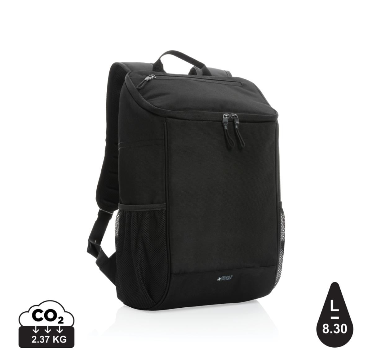 This deluxe Swiss Peak AWARE?? cooler backpack can go wherever a cool drink or meal is needed. The backpack features a wide opening for easy access to your food and drinks. A zippered top pocket ensures you can put all your necessities away. Fits up to 6 bottles or 25 cans. With AWARE?? tracer that validates the genuine use of recycled materials. Each cooler backpack saves 8.3 litres of water and is made with 13.9 PET bottles. 2% of proceeds of each AWARE?? product sold will be donated to Water.org. Composition exterior 100% recycled polyester. Lining in PEVA.