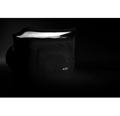 Pack your favourite food or beverages in this chic Swiss Peak AWARE?? cooler bag! The cooler bag will easily fit 8 cans and features an open front pocket and handle for easy carrying. With AWARE?? tracer that validates the genuine use of recycled materials. Each cooler bag saves 4.9 litres of water and reused 8.1 PET bottles. 2% of proceeds of each AWARE?? product sold will be donated to Water.org. Composition exterior 100% recycled polyester. Lining in PEVA.