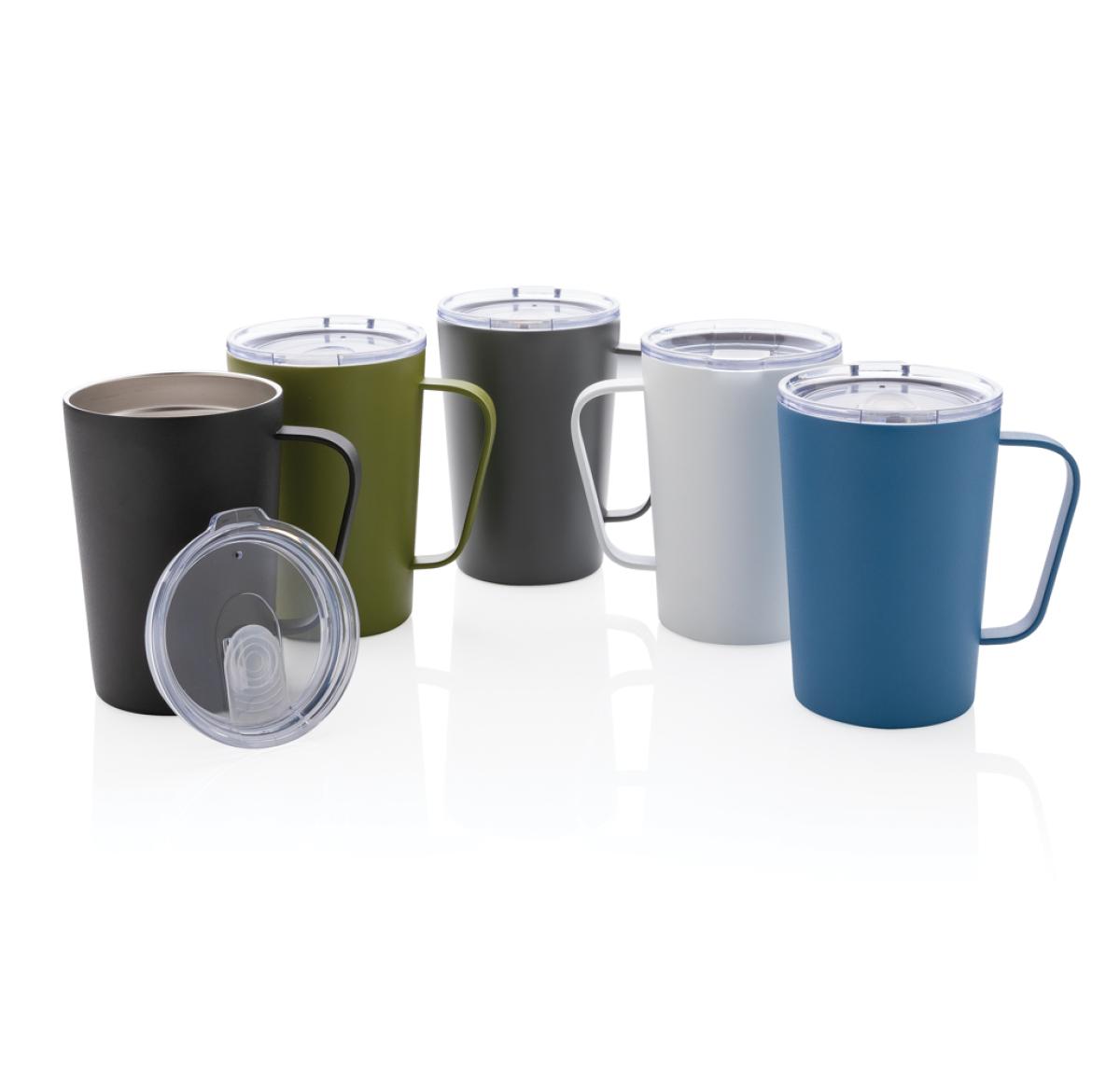 This RCS Recycled stainless steel modern mug features a spill-resistant lid that slides open smoothly to provide the perfect pour. This mug is made with double wall vacuum recycled stainless steel to keep beverages warm for up to 3 hours or cold for up to 6 hours longer. Made with RCS (Recycled Claim Standard) certified recycled materials. RCS certification ensures a completely certified supply chain of the recycled materials. Total recycled content: 88% based on total item weight. BPA free. Capacity 420ml. Including FSC??-certified kraft packaging.