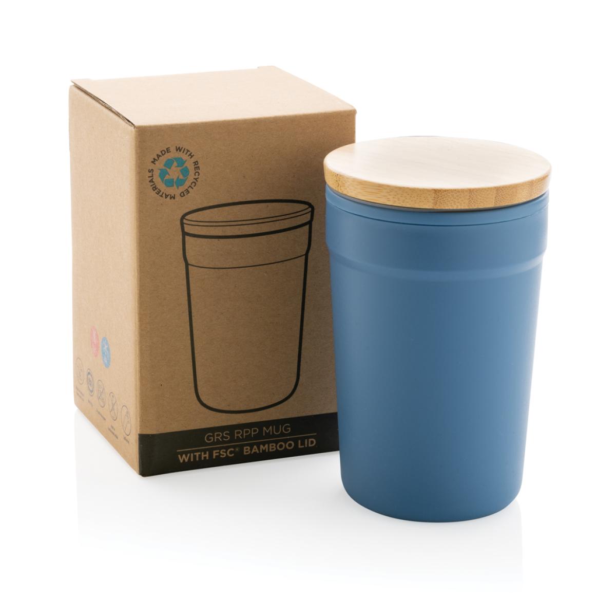 Custom Eco Coffee Mug 300ml With Bamboo Lid GRS RPP Blue