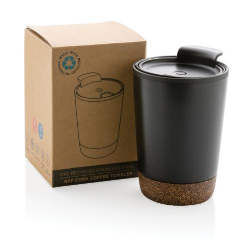 Start your day with your favourite beverage in this double wall coffee mug with recycled plastic inner and unique cork detail. Keeps your drinks warm for up to 3h and cold up to 6h. Made with GRS certified recycled materials. The inner is made from 100% GRS certified PP. GRS certification ensures a completely certified supply chain of the recycled materials. Total recycled content: 52% based on total item weight. BPA free. Capacity 300ml. Including FSC??-certified kraft packaging.