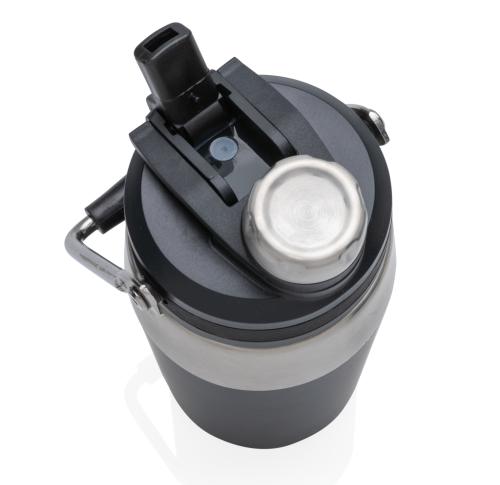 The ultimate stainless steel bottle for on-the-go versatility. The lid has a dual function that has both a flip top straw and screw cap so you can choose how you want to drink from the bottle! The bottles features a top handle for easy carrying. Double wall vacuum insulated stainless steel keeps beverages hot for up to 5 hours or cold for up to 15 hours. A powder coat finish creates a highly durable exterior. Capacity 500ml. BPA free.
