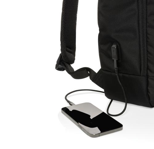 This beautifully designed backpack will suit all your needs! Featuring one large main compartment for your 15.6 inch laptop and one front compartment. Connect your power bank easily to the integrated USB charging port and charge your phone or tablet on the go. With AWARE?? tracer that validates the genuine use of recycled materials. Each bag saves 17.1 litres of water and has reused 28.7 0.5L PET bottles. 2% of proceeds of each Impact product sold will be donated to Water.org. PVC free.