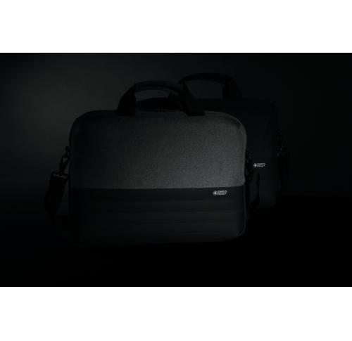 This Swiss Peak AWARE?? 15.6?? laptop bag offers unique style and storage for your laptop and tablet. With pockets to organise all of your tech gadgets and personal accessories. RFID pockets for your wallet and passport. Connect your power bank easily to the integrated USB charging port and charge your phone or tablet on the go. Back includes zippered pocket and trolley strap. Each bag saves 12.1 litres of water on average and has reused 20.3 PET bottles. 2% of proceeds of each Aware?? product sold will be donated to Water.org.