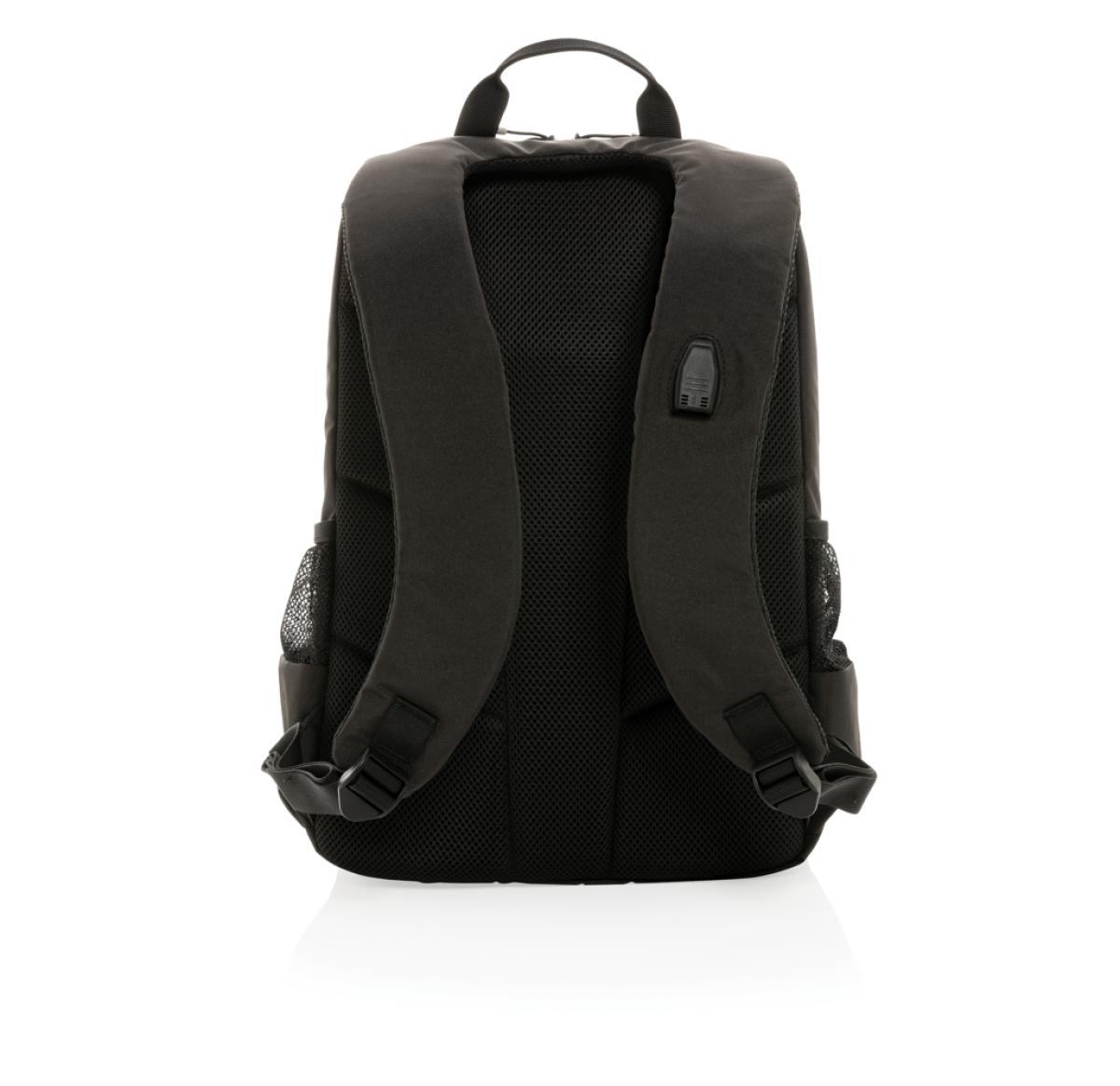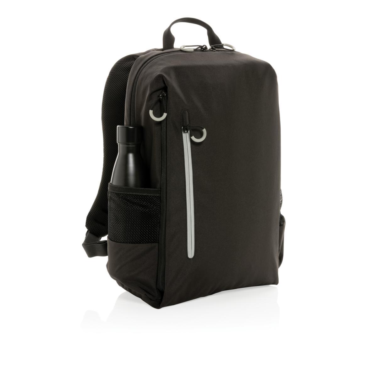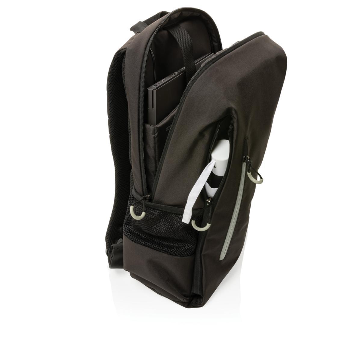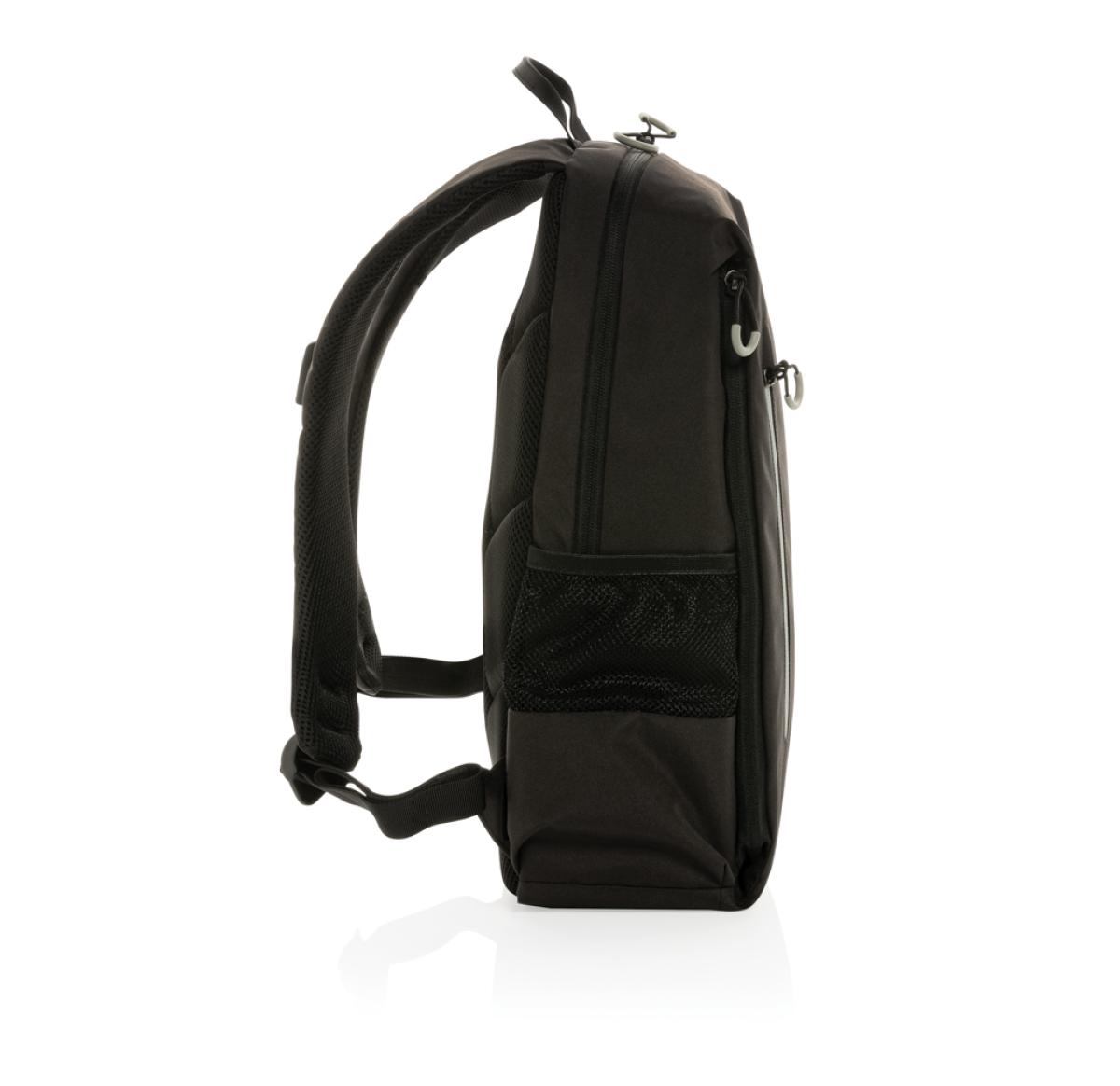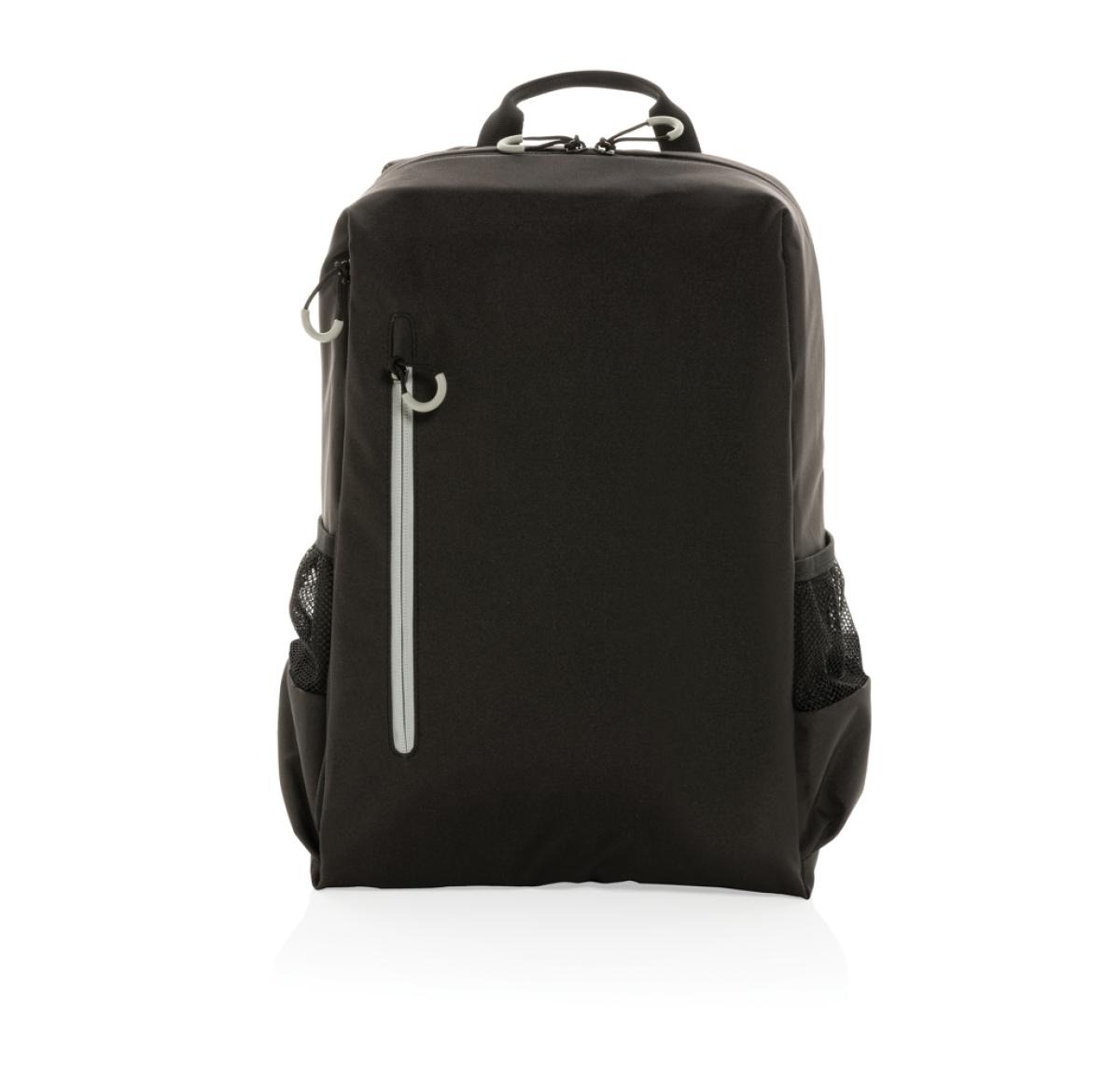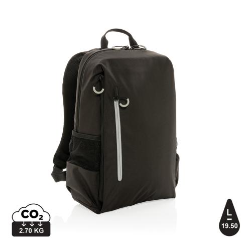 The Lima is a simple, practical and durable everyday backpack with 2 side pockets for water bottles or your umbrella. Convenient USB output on the strap. Padded 15.6" compartment for laptop computer as well as several spacious compartments and RFID protected sleeve pockets. With AWARE?? tracer that validates the genuine use of recycled materials. Each backpack saves 19.5 litres of water and has reused 32.8 bottles. 2% of proceeds of each Impact product sold will be donated to Water.org. Composition 100% recycled polyester. Registered design??