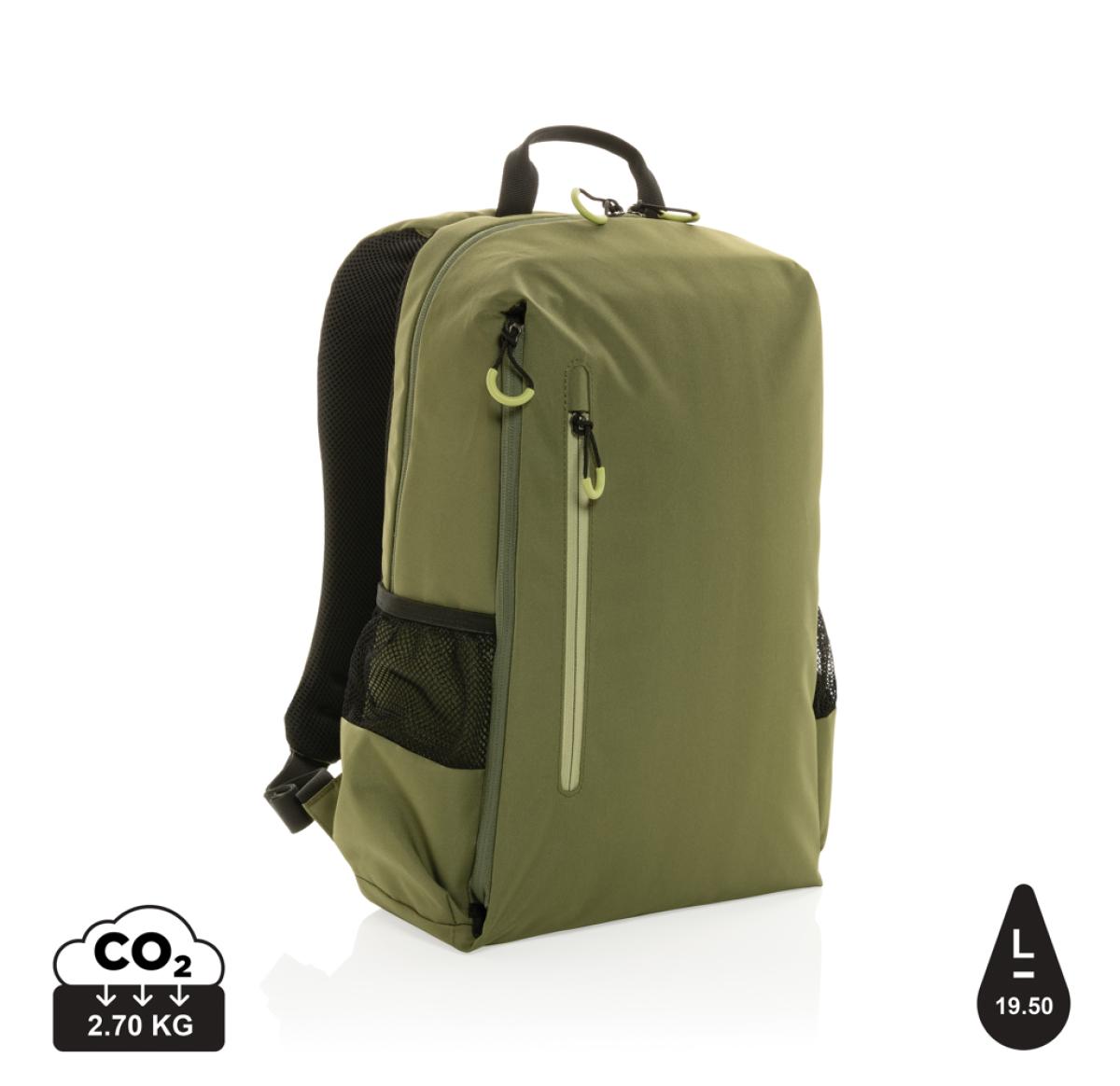 The Lima is a simple, practical and durable everyday backpack with 2 side pockets for water bottles or your umbrella. Convenient USB output on the strap. Padded 15.6" compartment for laptop computer as well as several spacious compartments and RFID protected sleeve pockets. With AWARE?? tracer that validates the genuine use of recycled materials. Each backpack saves 19.5 litres of water and has reused 32.8 bottles. 2% of proceeds of each Impact product sold will be donated to Water.org. Composition 100% recycled polyester. Registered design??