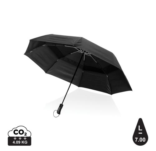 This Swiss Peak Aware?? RPET Tornado 27?? pocket storm umbrella is the perfect umbrella! Compact enough but if unfolded it becomes an umbrella which is big enough for 2 people. Made with an aluminium frame and fibreglass ribs, 3 section umbrella and auto open & close. Stormproof. The canopy is made with 190T RPET. With AWARE?? tracer that validates the genuine use of recycled materials. This umbrella canopy has saved 7 litres of water, is made of 11.7 PET bottles (500ml). 2% of proceeds of each Impact product sold will be donated to Water.org.