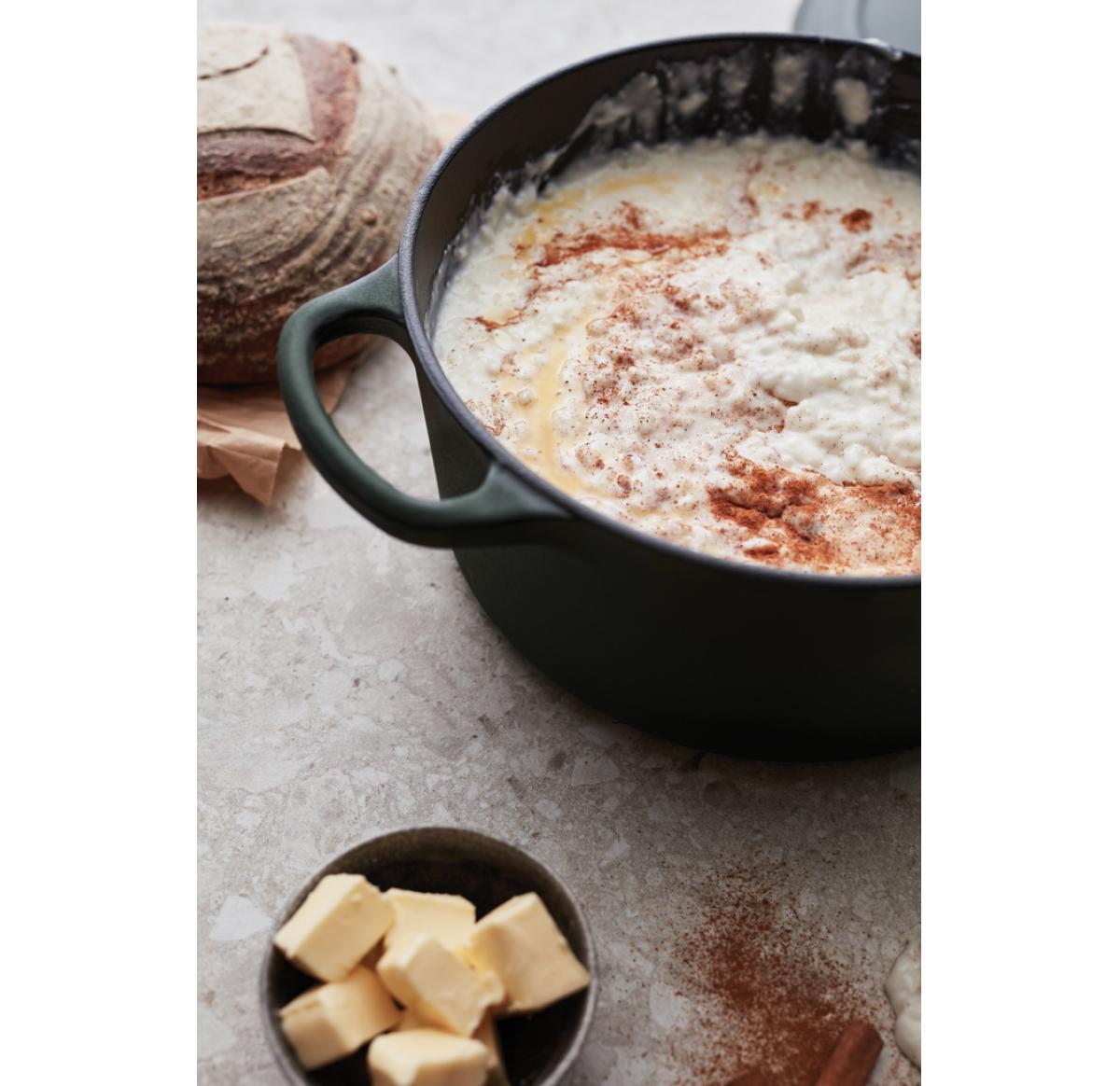 Experience the Monte series' large and robust cast iron pot, perfect for casseroles and slow cooking, thanks to its exceptional heat capacity. The pot boasts a thick base that prevents contents from burning easily. The lid features small spikes that enable even and gentle distribution of water vapour from condensation over the contents, offering a self-basting feature. The pot's black enamel interior features larger pores and a slightly rougher surface that gradually fills with oil over time, producing a non-stick patina like that of raw cast iron. This cast iron pot is suitable for all types of hobs, including induction hobs.