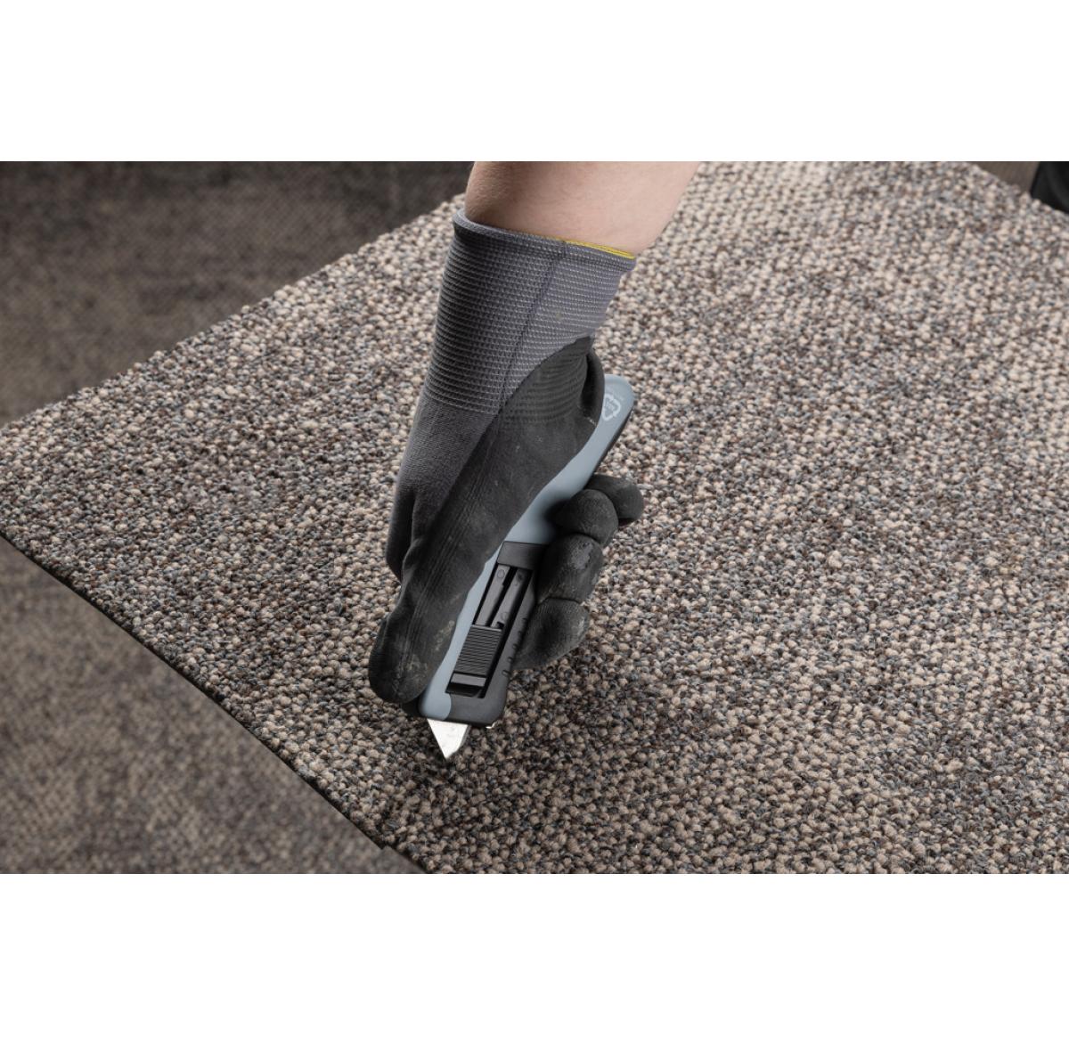 RCS certified recycled plastic auto retract knife made with RCS (Recycled Claim Standard) certified recycled ABS, PC and stainless steel SK4 blade. Total recycled content: 93% based on total item weight. RCS certification ensures a completely certified supply chain of the recycled materials. Easy to use both with left or right hand. Will auto-retract after use for extra safety. Packed in FSC® mix kraft package.