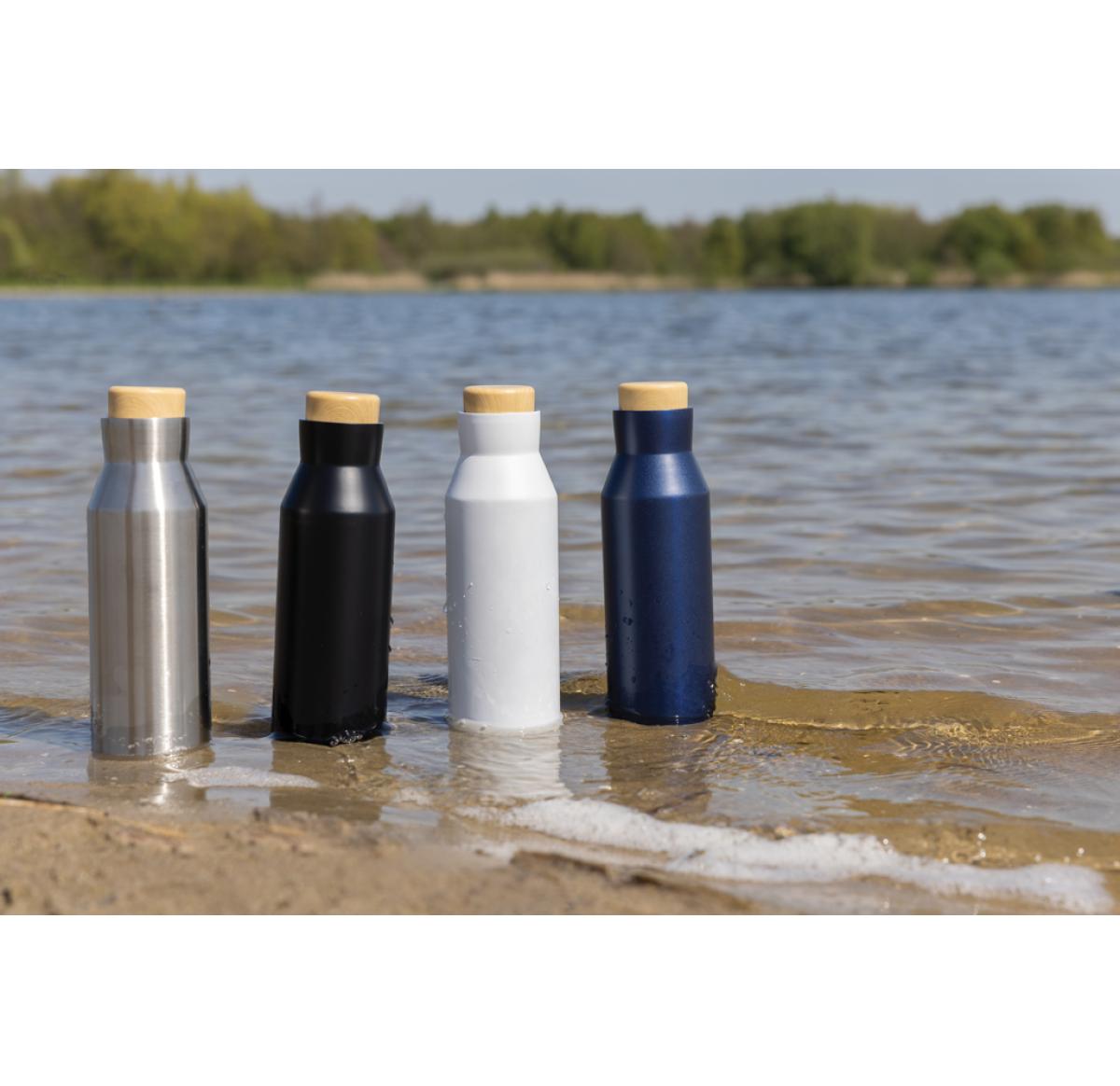 Quench your thirst anywhere you go with the Gaia leakproof vacuum bottle. Crafted from recycled stainless steel with a leakproof PP lid, this 600ml bottle keeps your beverages warm for up to 5 hours and cold for up to 15 hours. With a smooth finish, this vacuum bottle is a must-have in your drinkware collection. BPA free. Made with RCS (Recycled Claim Standard) certified recycled materials. RCS certification ensures a completely certified supply chain of the recycled materials. Total recycled content: 88% based on total item weight.
