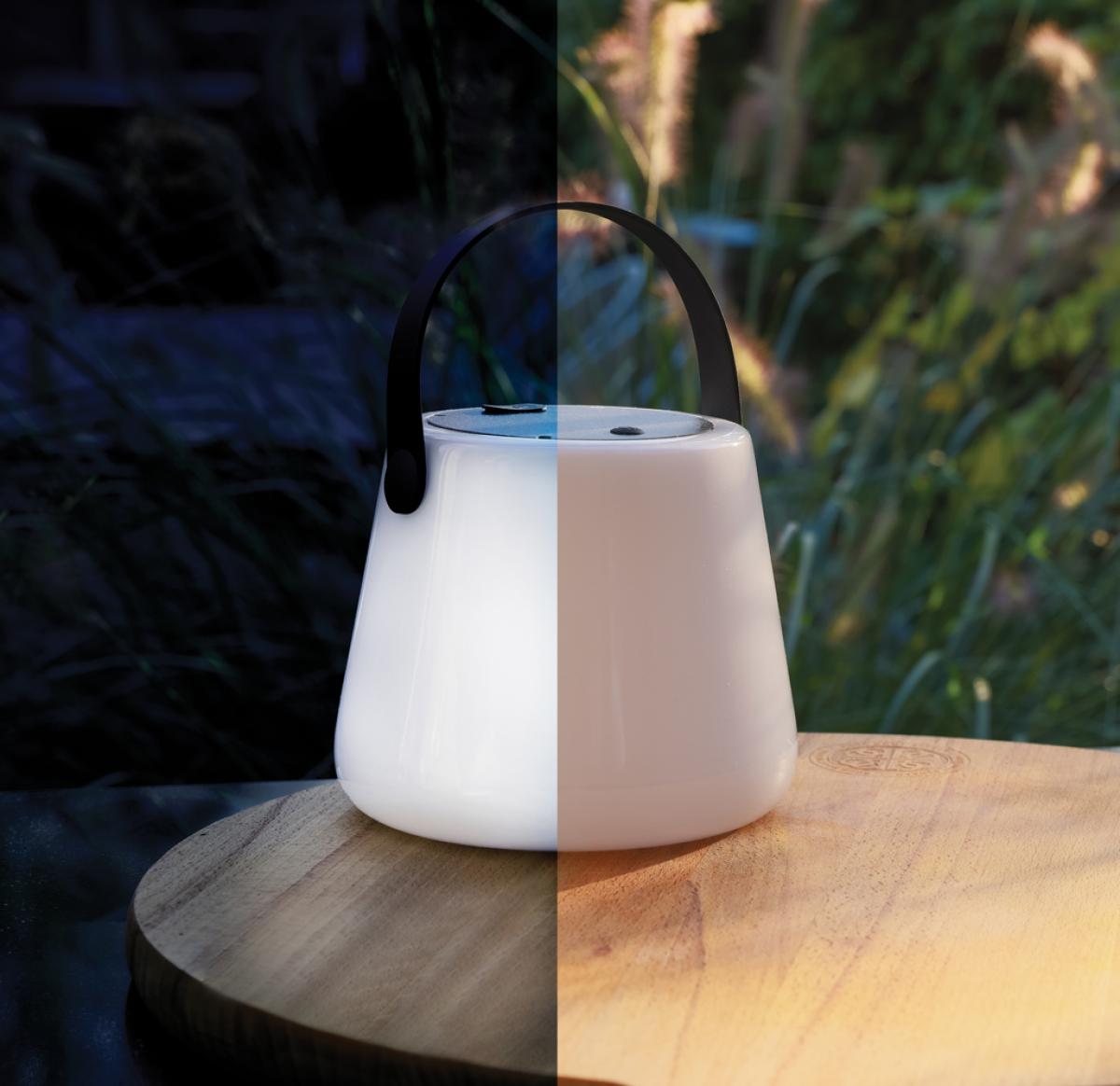 LED solar table light made with RCS certified recycled ABS. Total recycled content: 71% based on total item weight. RCS certification ensures a completely certified supply chain of the recycled materials. The torch uses a re-chargeable A-grade 1200 mah lithium battery so no need to replace the batteries. Simply re-charge via your USB socket and the integrated type C port. Including 80cm charging cable. Charging time by cable: 3 hours. 10 hours in bright sunlight will provide up to 3-4 hours of working time. Working time when fully charged: 20 hours. IPX 4 waterproof.