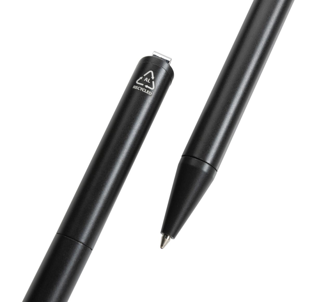 Explore the Xavi RCS certified recycled aluminium pen. This pen blends style and functionality seamlessly, making them a thoughtful choice for your writing needs. With twist-action mechanism and blue Dokumental ink. Writing width 1mm, writing length 1000 metres. Total recycled content based on item weight: 28%