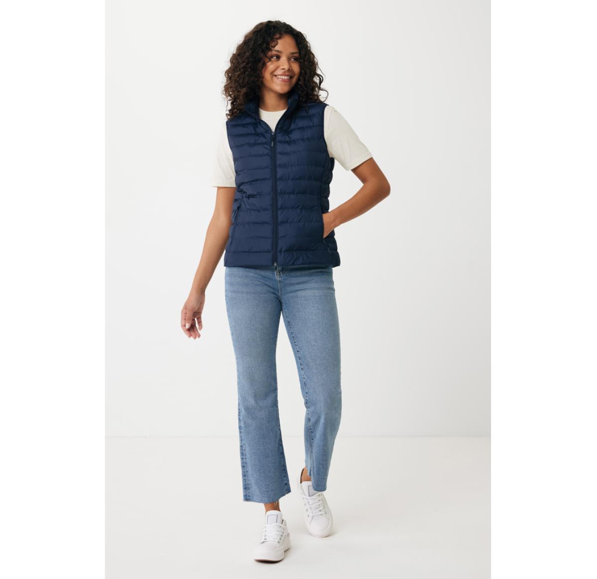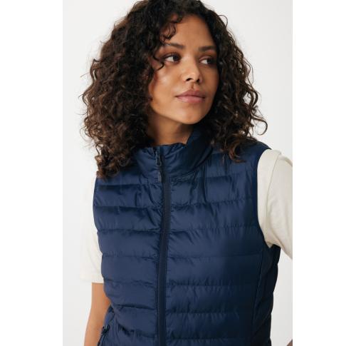 Women’s bodywarmer made from 100% post-consumer recycled polyester. The bodywarmer is fully quilted with 100% recycled polyester pearl filling. It has a reversed zipper at the front and practical zip pockets in the side panel seams. All zippers have extra zip pullers in matching color for a refined look. The armholes have elastic binding and all seams at the inside are clean finished with recycled binding. Fluorine/PFAS free water repellent impregnation. The use of genuine recycled fabric materials and environmental impact claims are guaranteed, by using the AWARE™ disruptive physical tracer and blockchain technology. By scanning the QR code, you will gain access to a dedicated digital passport. 2% of proceeds of each sold product will be donated to Water.org. This product is OEKO-TEX® STANDARD 100 certified. The Meru bodywarmer is also available in men fit.