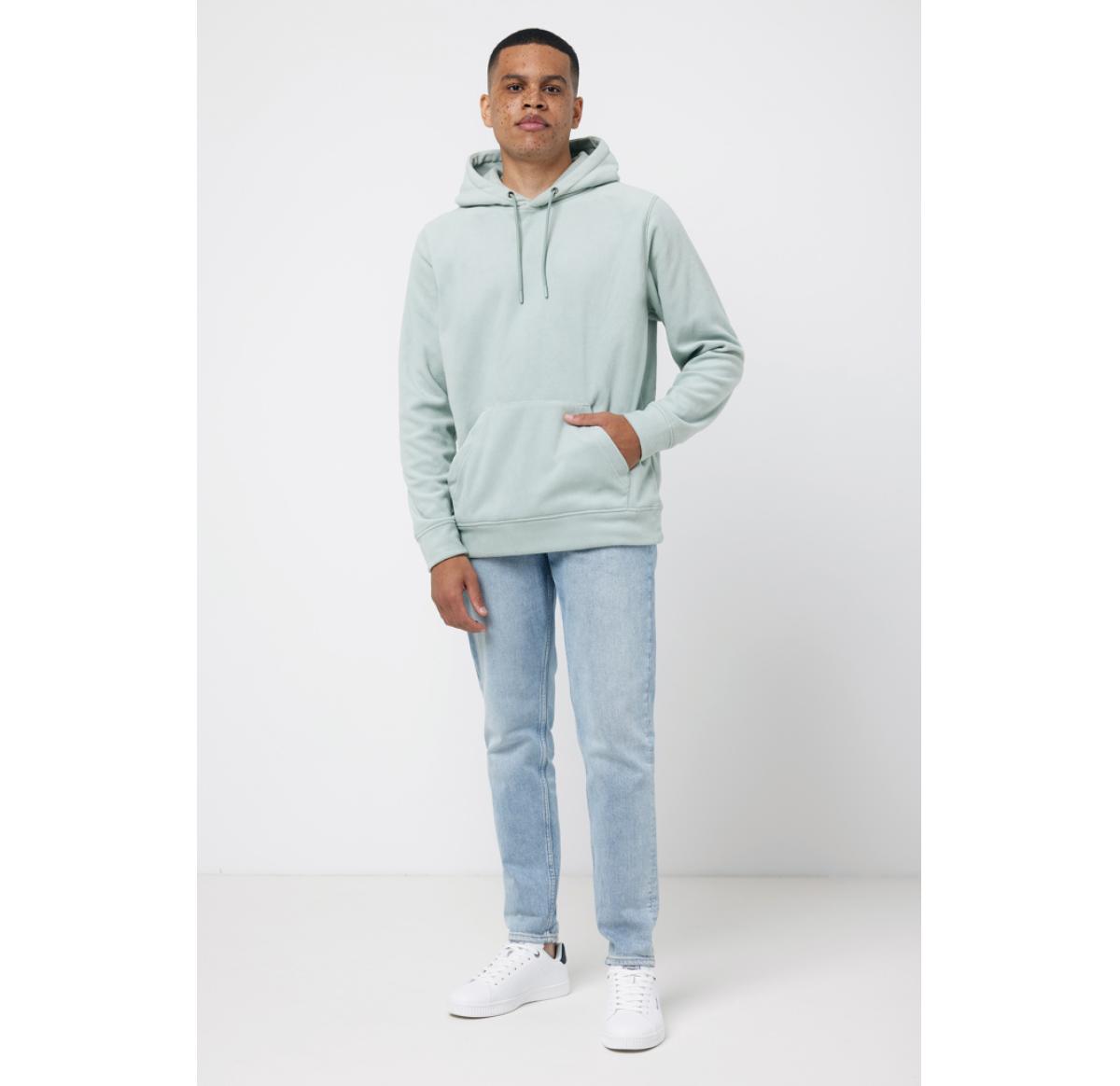 Unisex microfleece hoodie made from 100% post-consumer recycled polyester in 240 G/M². This fleece hoodie envelops you in softness and warmness. It has a convenient kangaroo pocket, double-layered hood with a tonal drawstring and metal eyelets. The Inside half-moon in woven fabric offers a perfect personalised inside neck print. Bottom hem and sleeve cuffs are made from self-fabric for extra softness. The use of genuine recycled & organic fabric materials and environmental impact claims are guaranteed, by using the AWARE™ disruptive physical tracer and blockchain technology. By scanning the QR code, you will gain access to a dedicated digital passport of the product. 2% of proceeds of each sold product will be donated to Water.org. This product is OEKO-TEX® STANDARD 100 certified.